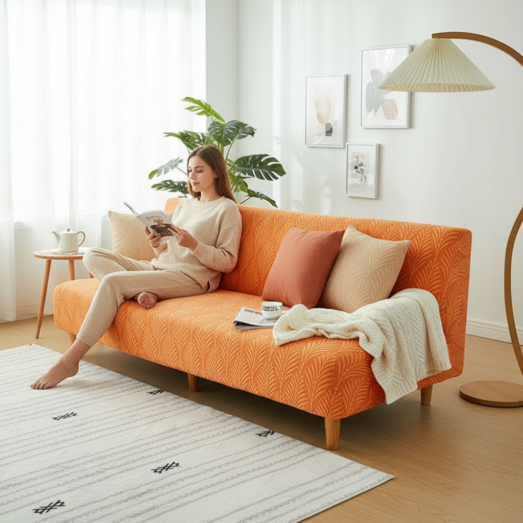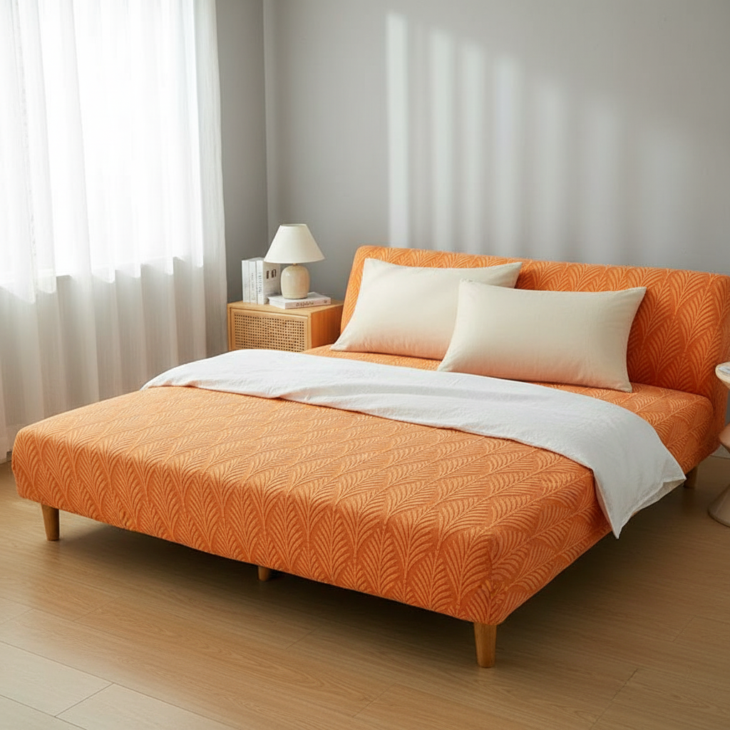 Transformez l'ambiance de votre salon avec notre housse de clic-clac orange, conçue pour apporter une touche de vitalité et de modernité. Son élégant motif jacquard et sa couleur éclatante rafraîchiront instantanément votre canapé-lit, tout en le protégeant au quotidien.