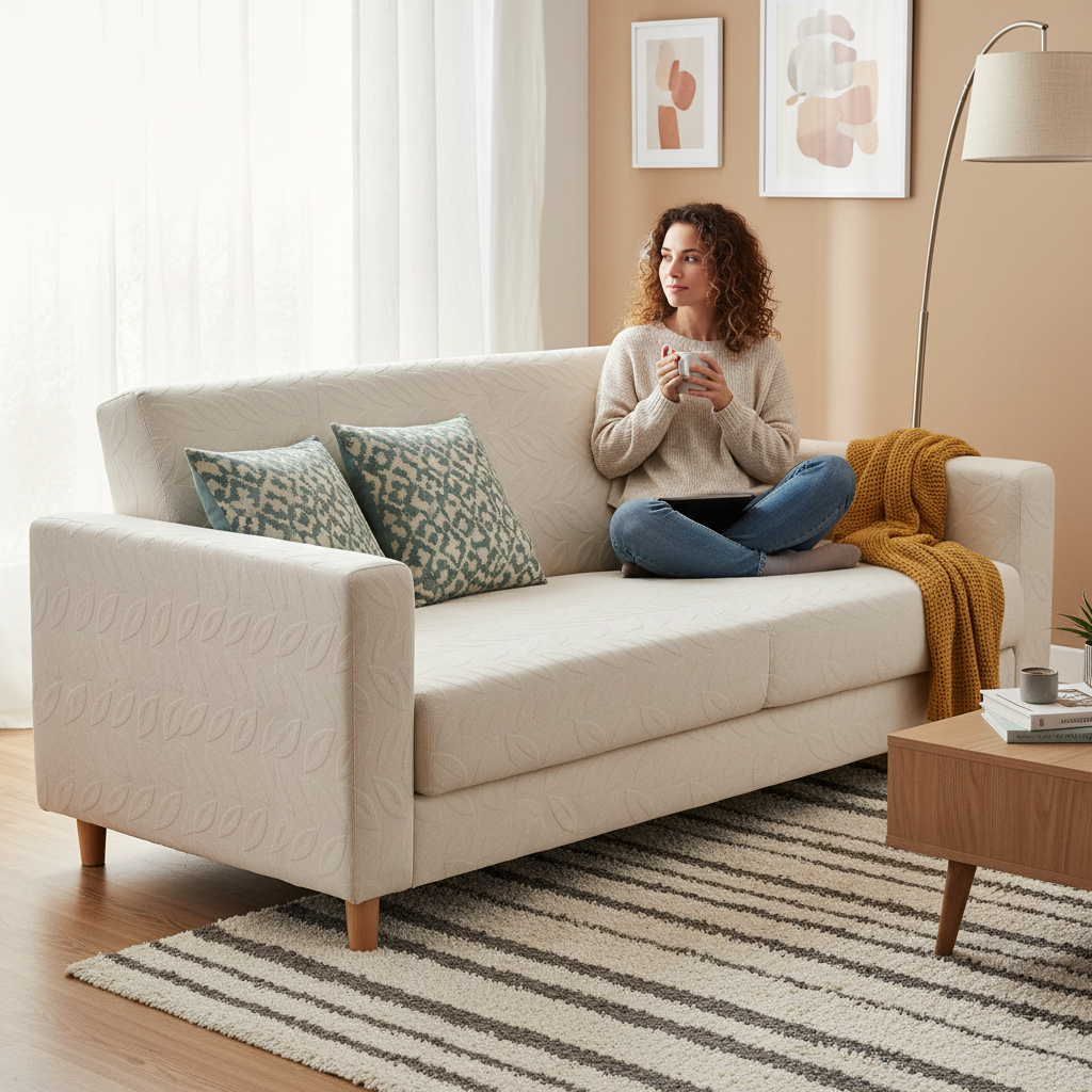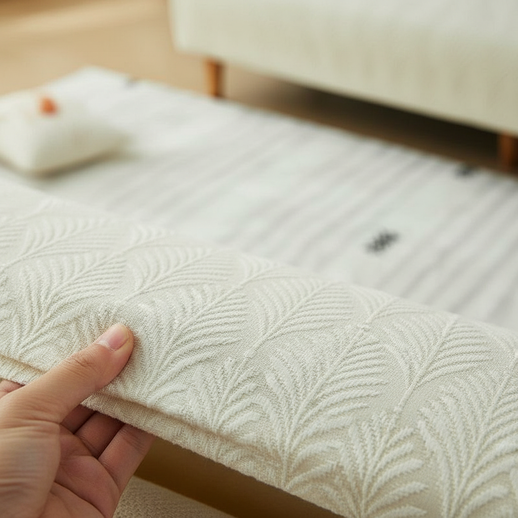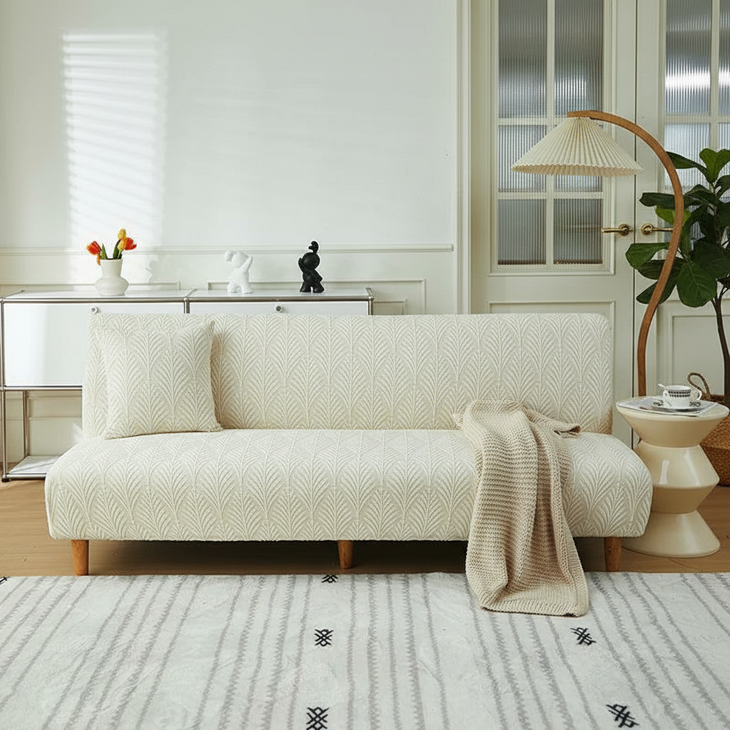 Offrez une nouvelle jeunesse à votre canapé-lit futon en ajoutant cette housse jacquard écru à votre panier. Profitez d'une protection élégante et d'un entretien sans effort pour votre mobilier.