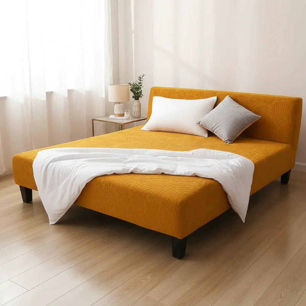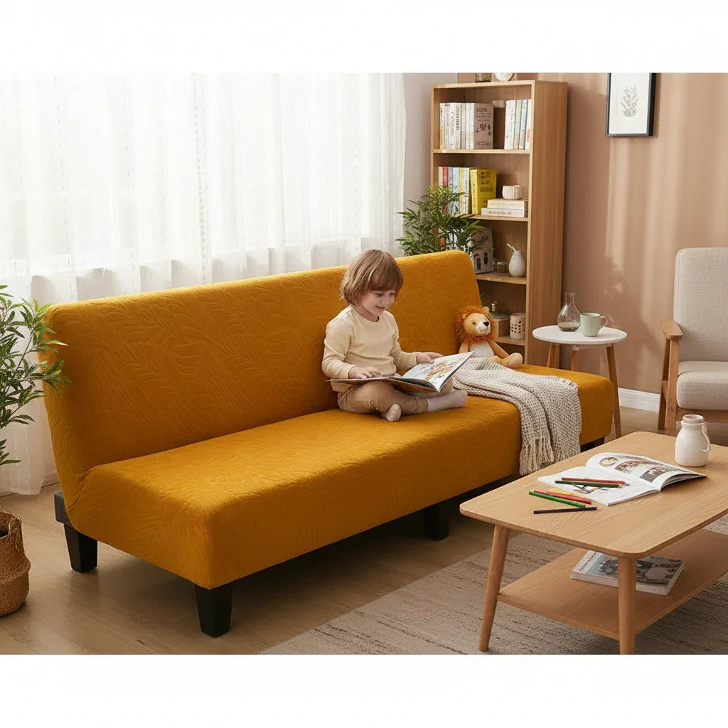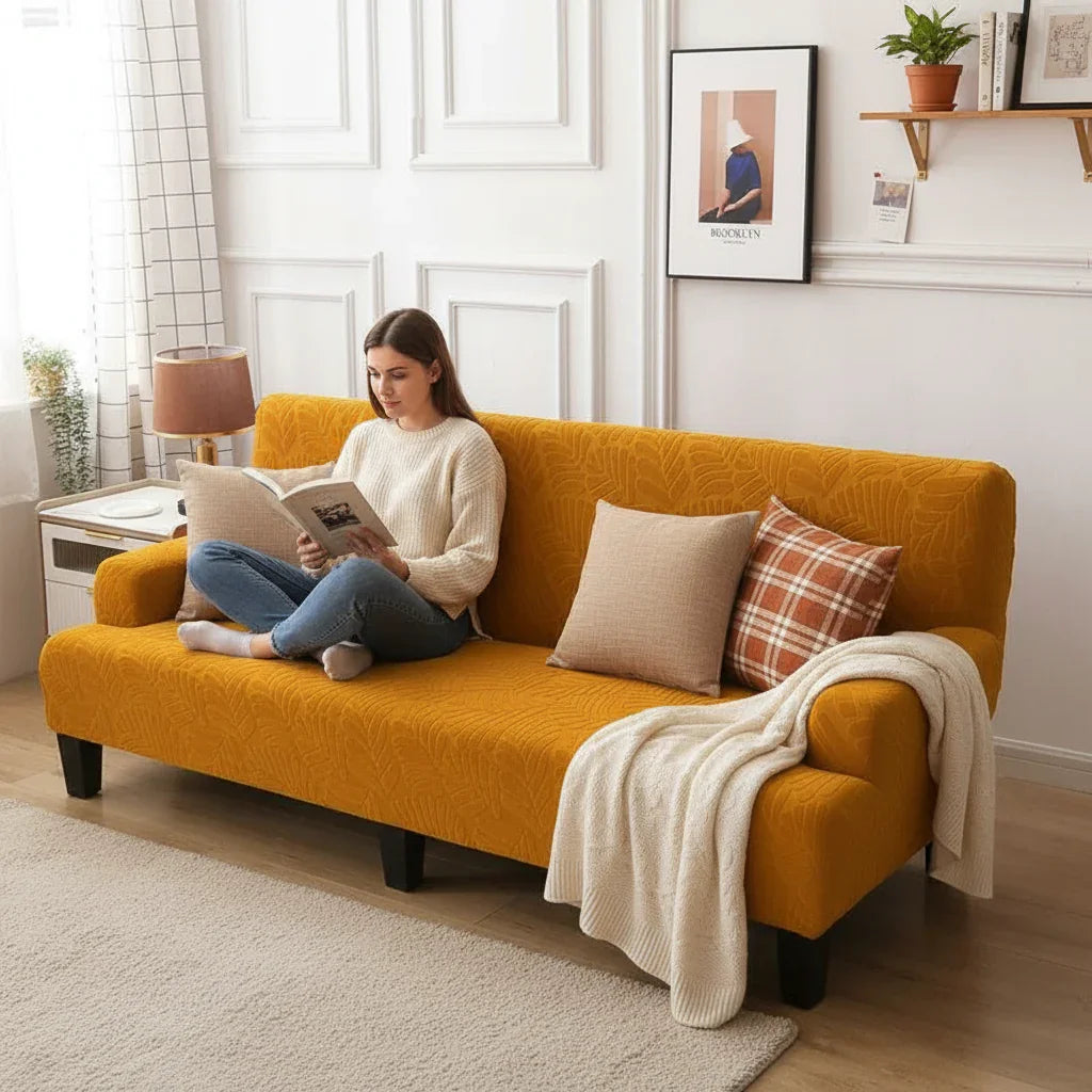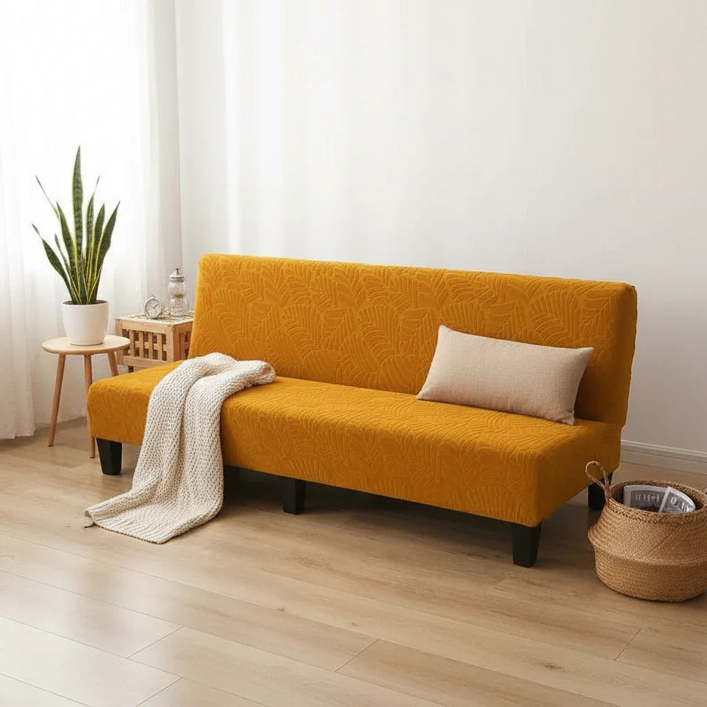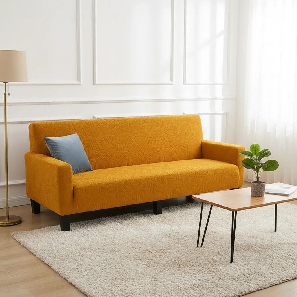 Transformez et protégez votre canapé-lit avec notre housse de clic-clac extensible, arborant un élégant motif feuillage ocre. Conçue avec un tissu tricoté doux et respirant, elle offre une nouvelle vie à votre intérieur tout en assurant un confort optimal.