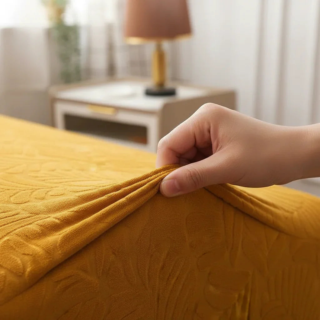 Housse de clic-clac ocre feuillage extensible et antidérapante