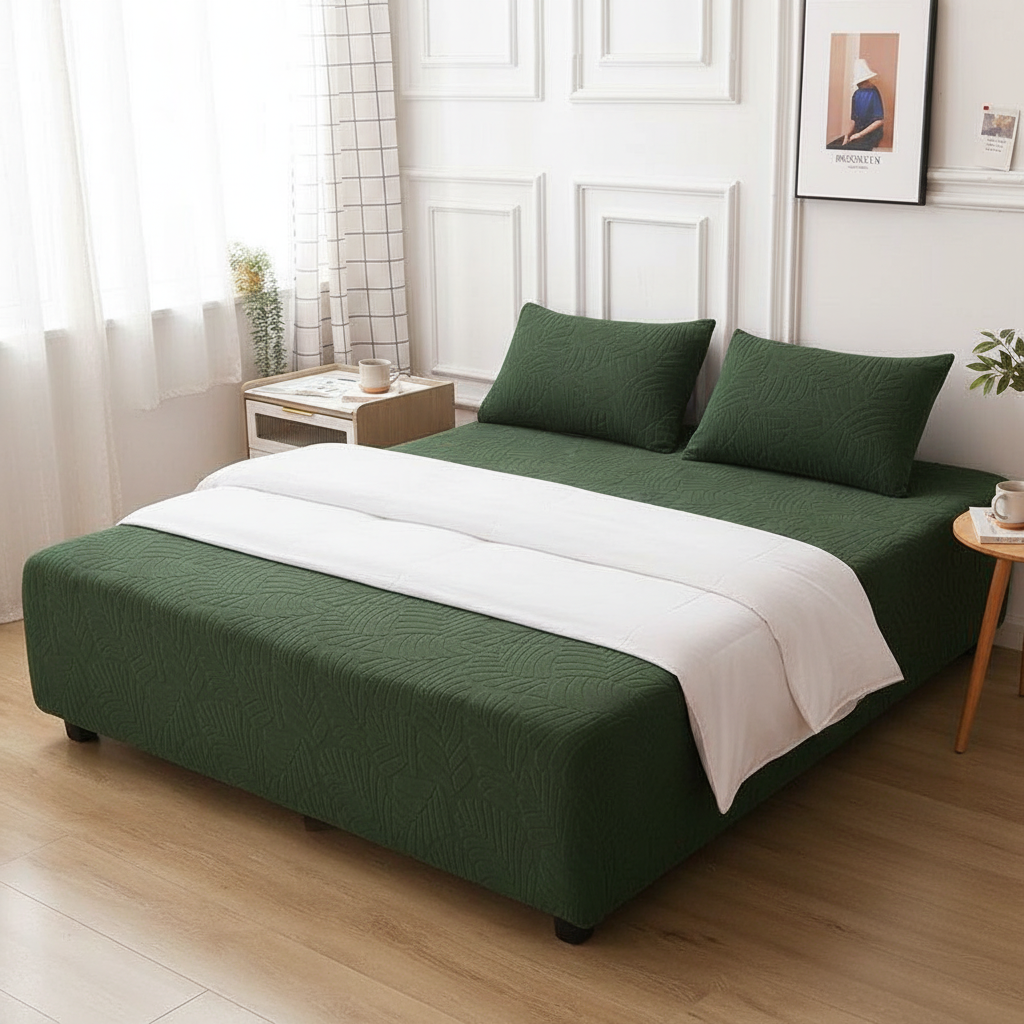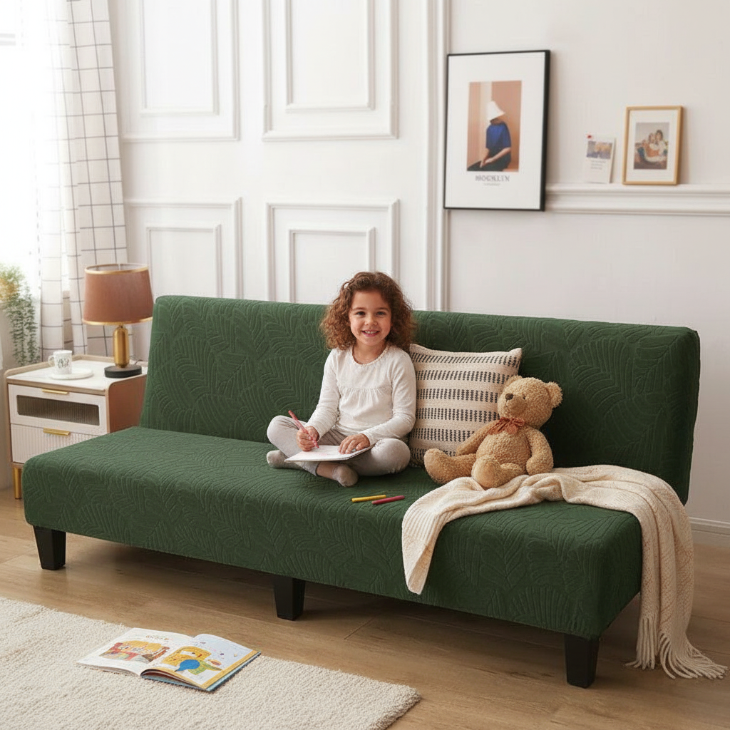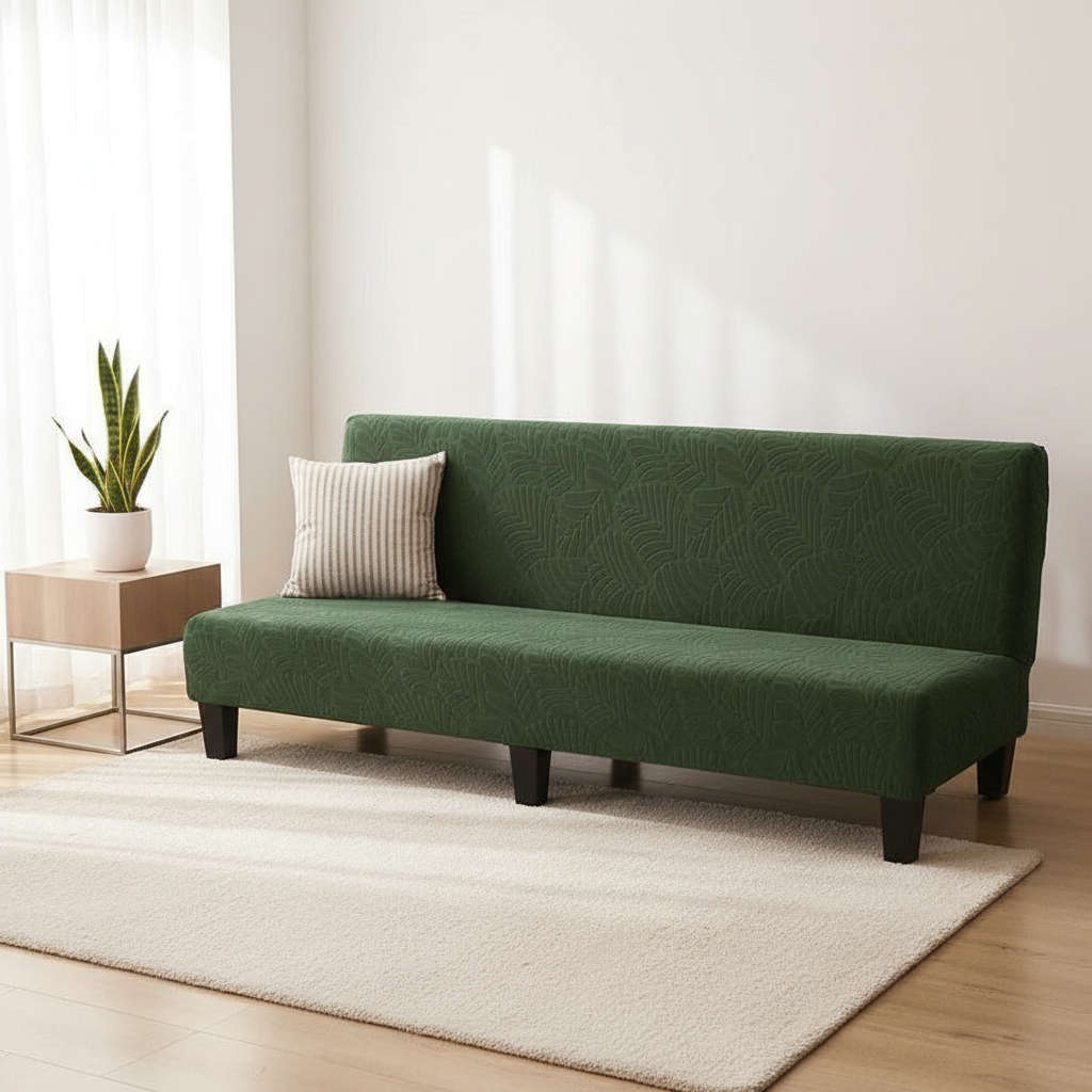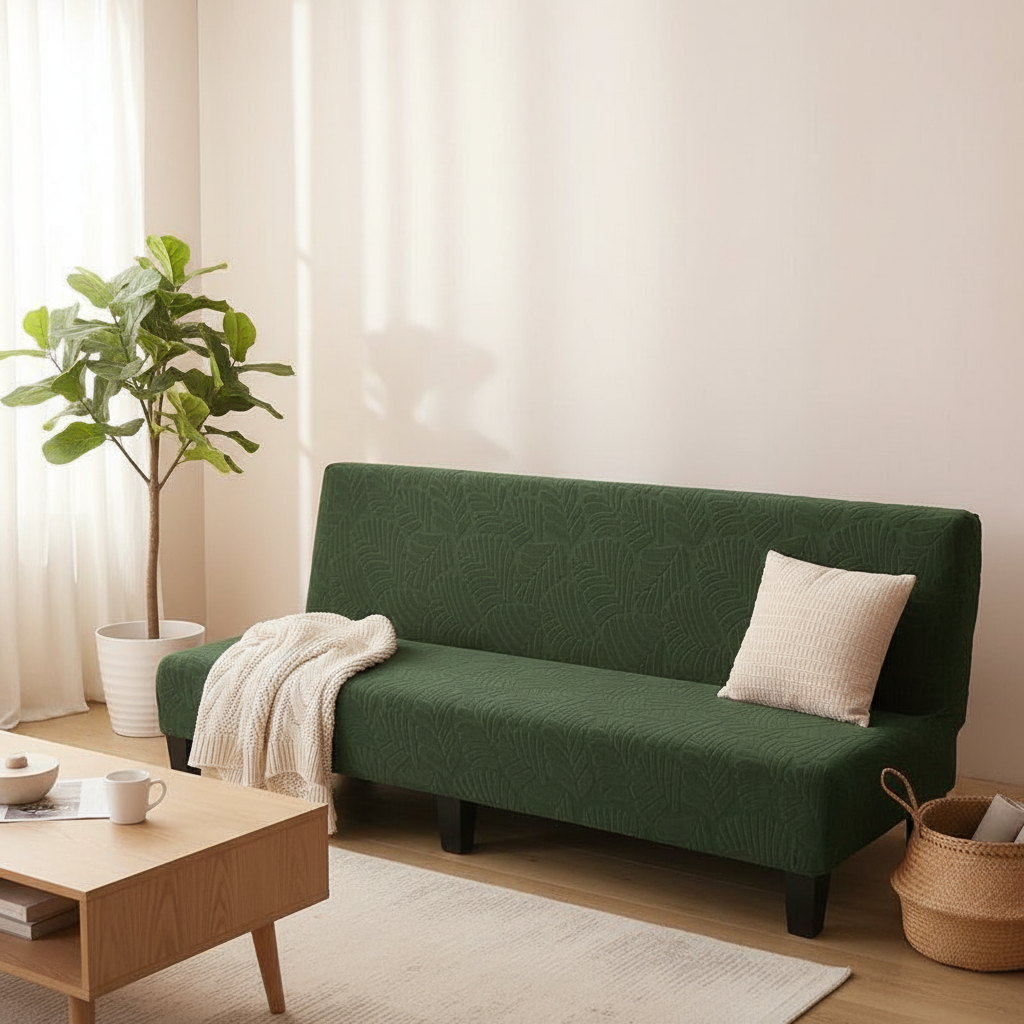 Offrez une seconde vie à votre canapé-lit grâce à cette housse de clic-clac extensible, conçue pour un ajustement parfait. Son motif délicat de feuilles vertes sur fond uni apporte une touche de nature et d'élégance. Fabriquée en 95% polyester et 5% élasthanne, elle garantit confort, douceur et durabilité.