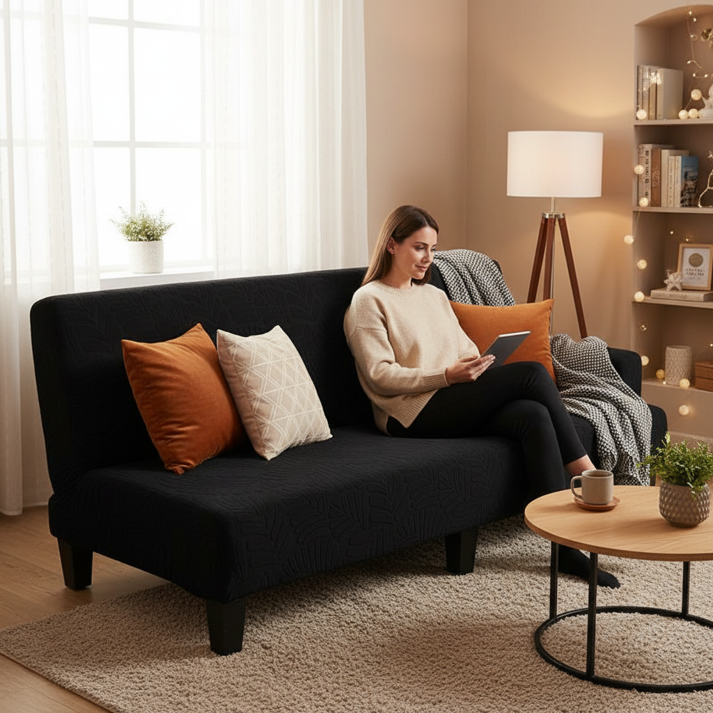 Cette housse de canapé-lit universelle est compatible avec les canapés de type Loveseat, Sofa, Futon Sofa, ainsi que les canapés-lits pliants et sans accoudoirs. Disponible en tailles M (155-185 cm) et L (190-210 cm), elle s'adapte à la majorité des banquettes convertibles pour une protection complète.