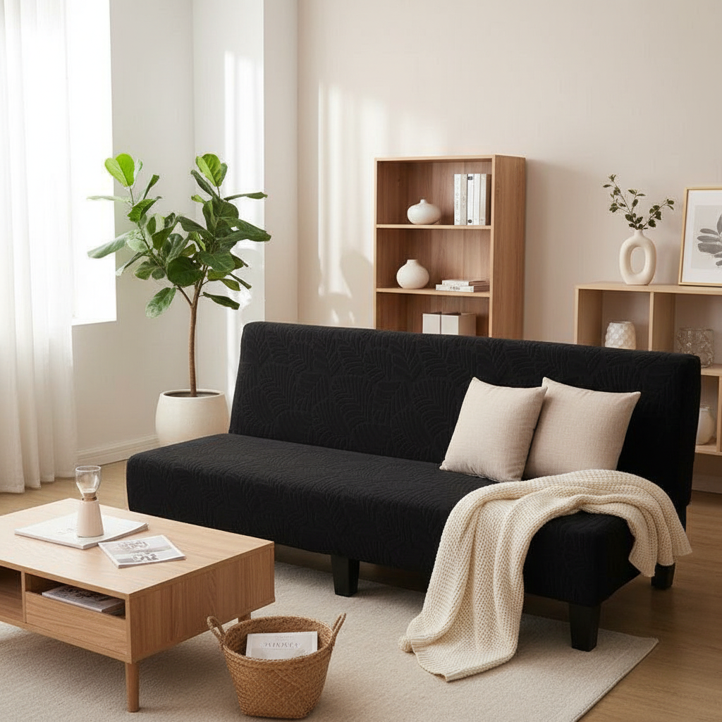 Transformez votre intérieur avec notre housse de clic-clac extensible noire. Conçue en 95% polyester et 5% spandex, son tissu doux et élastique épouse parfaitement les formes de votre canapé-lit, tout en apportant une touche d'élégance discrète grâce à son motif feuilles tissé. Cette housse est idéale pour rafraîchir votre décoration et protéger votre mobilier quotidiennement.