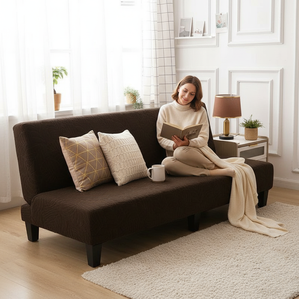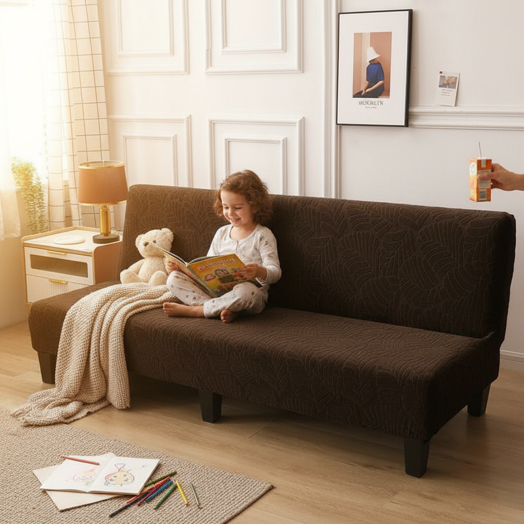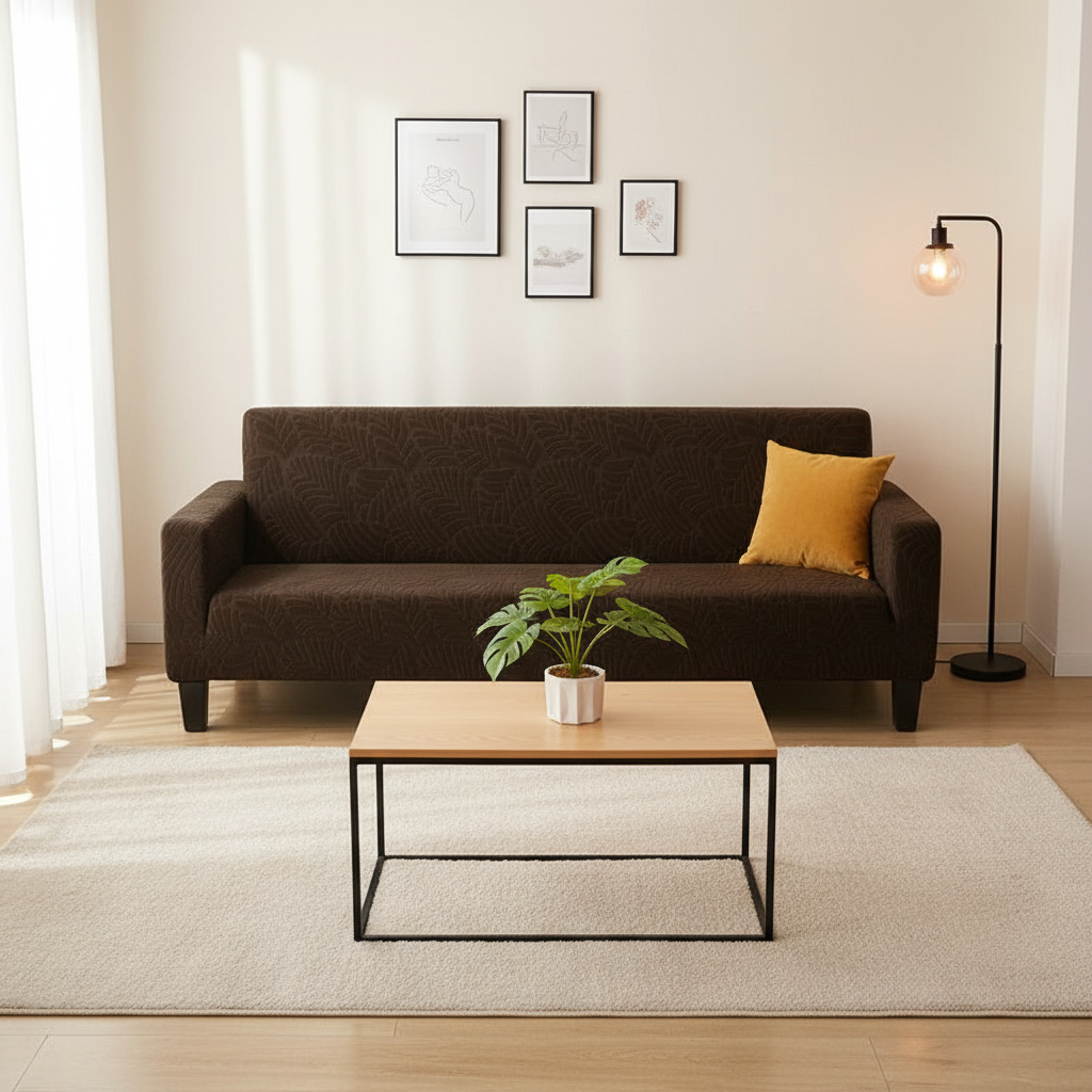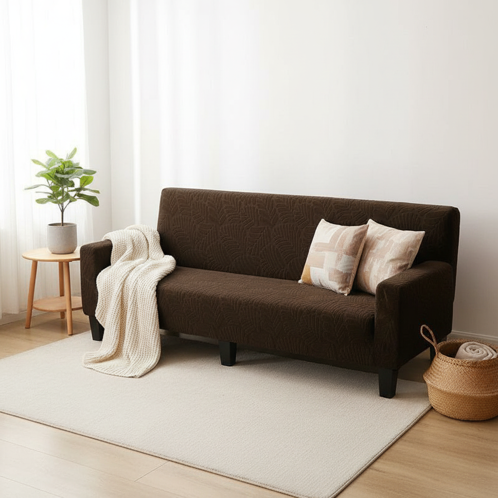 Transformez votre intérieur avec cette housse de clic-clac en 95% polyester et 5% spandex, alliant douceur et élasticité. Son motif discret de feuilles dans une teinte chocolat chaleureuse apporte une touche d'élégance naturelle, s'adaptant parfaitement à divers styles de décoration.