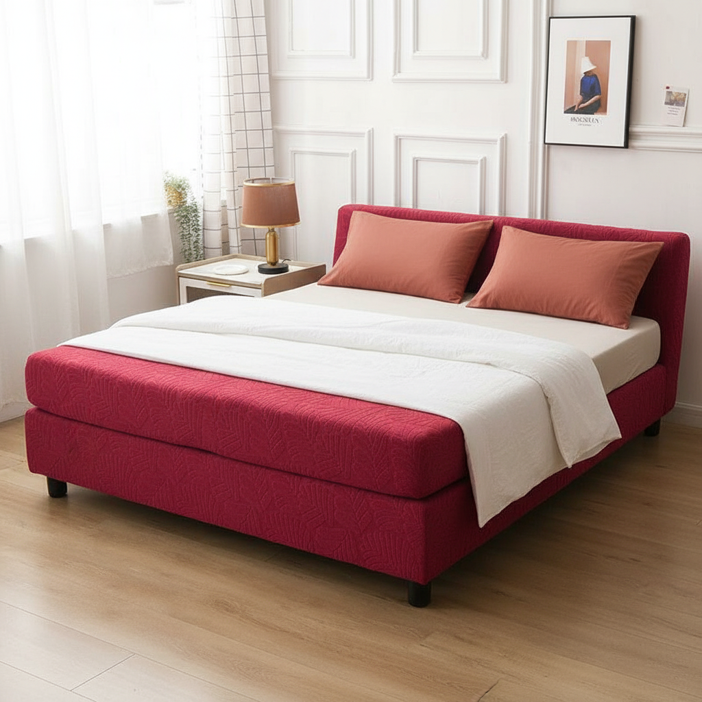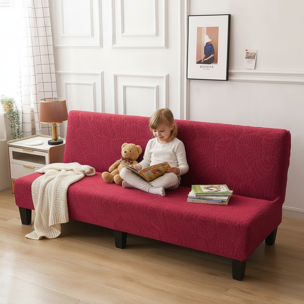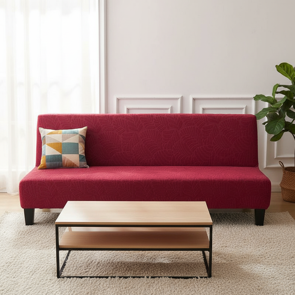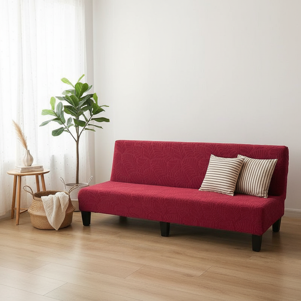 Transformez l'apparence de votre canapé-lit en un instant avec notre housse de clic-clac bordeaux. Confectionnée en 95% polyester et 5% spandex, cette housse extensible s'adapte parfaitement à votre mobilier, offrant douceur et confort. Son élégant motif de feuilles apporte une touche décorative unique à votre intérieur.