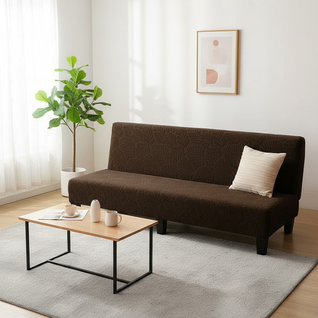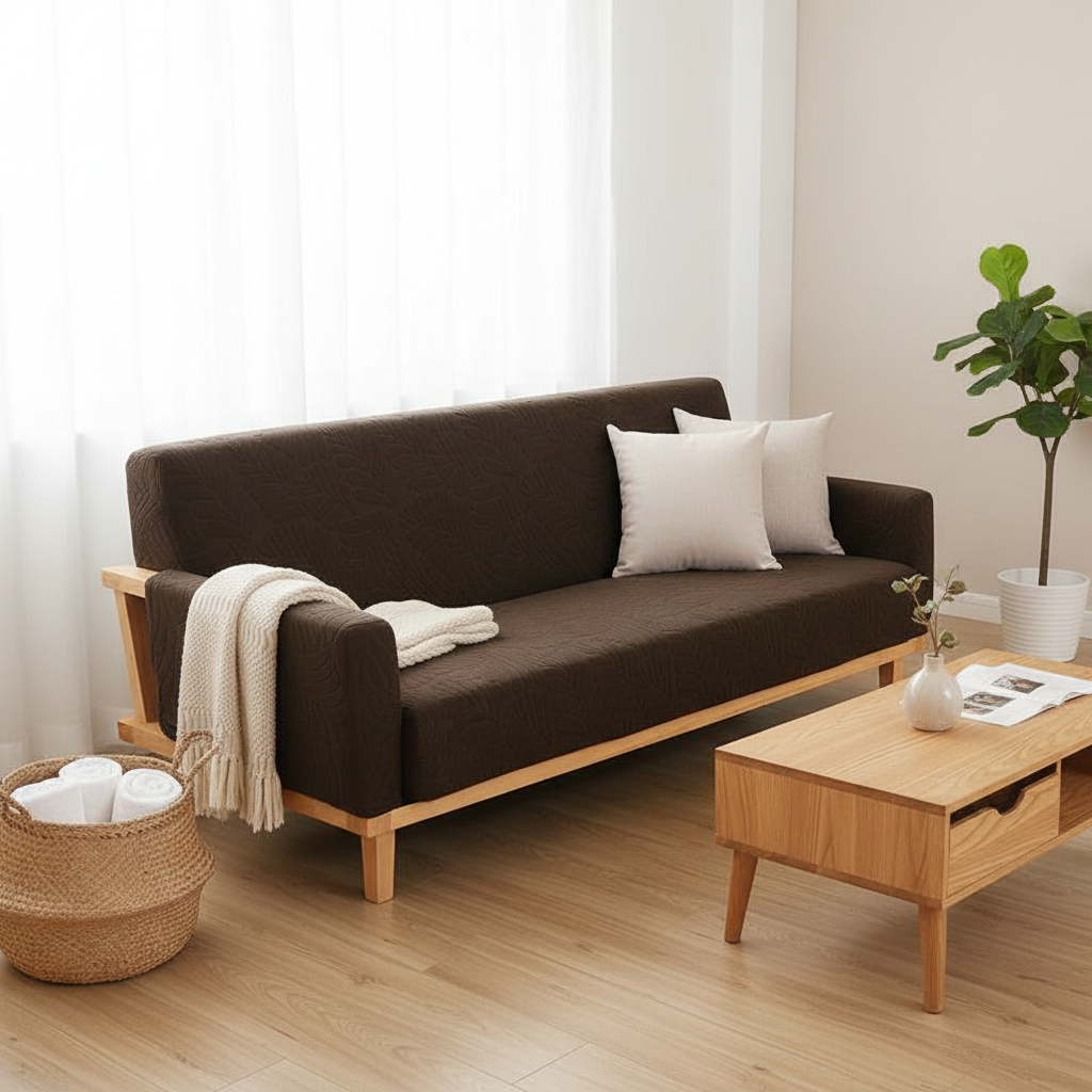 Transformez votre intérieur avec notre housse de clic-clac marron jacquard feuilles. Confectionnée en 95% polyester et 5% élasthanne, elle offre une douceur, un confort et une protection optimale à votre canapé-lit. Son motif jacquard délicat et sa couleur marron apporteront une touche d'élégance naturelle et chaleureuse à votre décoration.