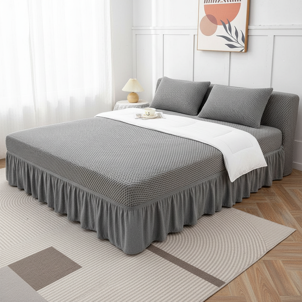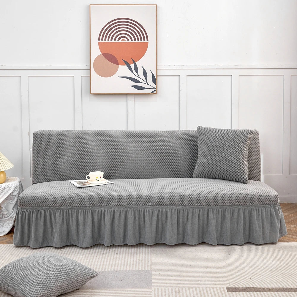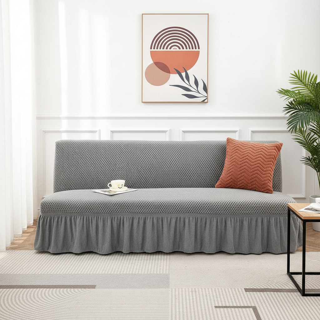 Transformez l'apparence de votre canapé-lit avec notre housse de clic-clac grise extensible, conçue pour allier esthétique et praticité. Fabriquée à partir de 95% polyester et 5% élasthanne, sa texture tricotée et ses élégants volants apportent une touche de modernité et de confort à votre intérieur.
