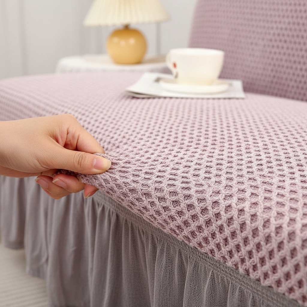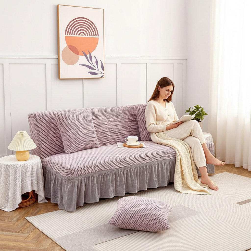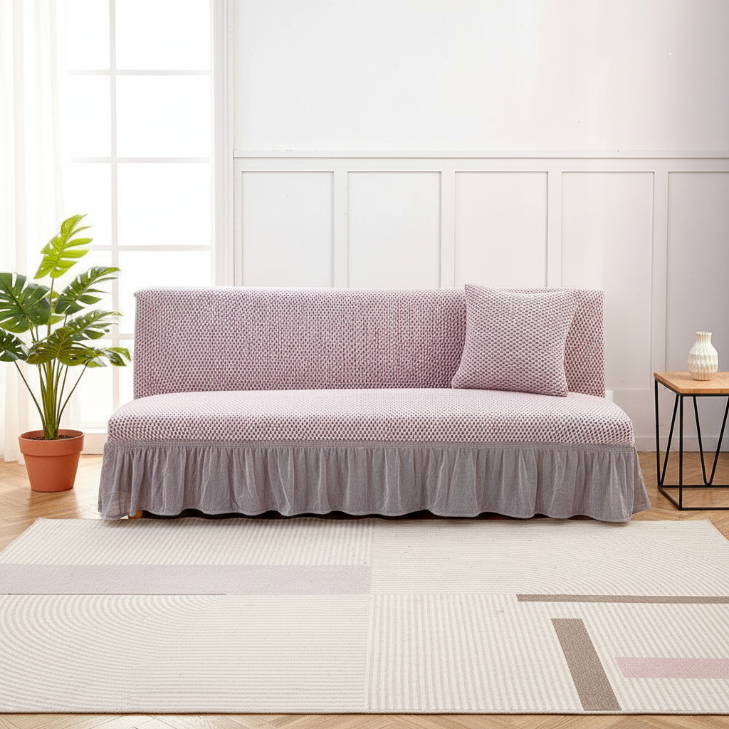 Offrez une nouvelle vie à votre intérieur avec notre housse de clic-clac rose poudré, rehaussée d'une élégante jupe plissée. Conçue en tissu tricoté extensible (95% polyester, 5% spandex), elle est douce, confortable et transforme instantanément votre canapé-lit en une pièce maîtresse de votre décoration, tout en le protégeant efficacement.