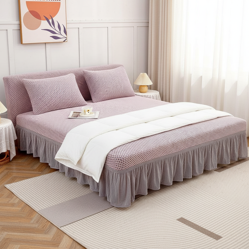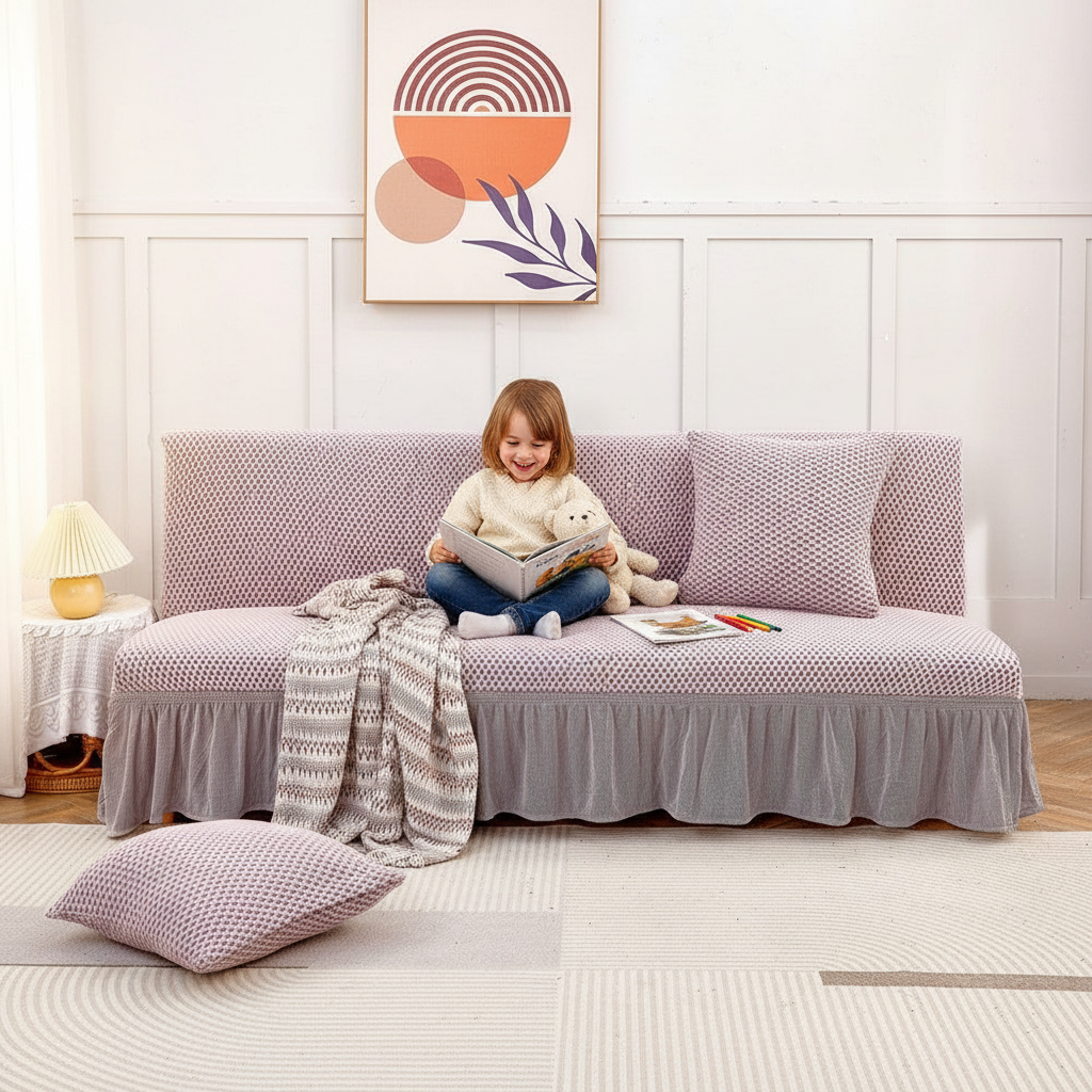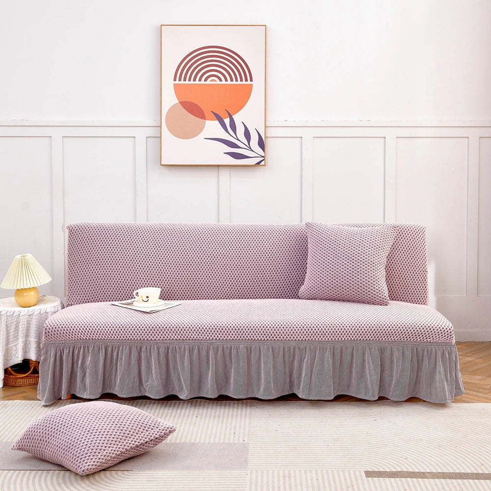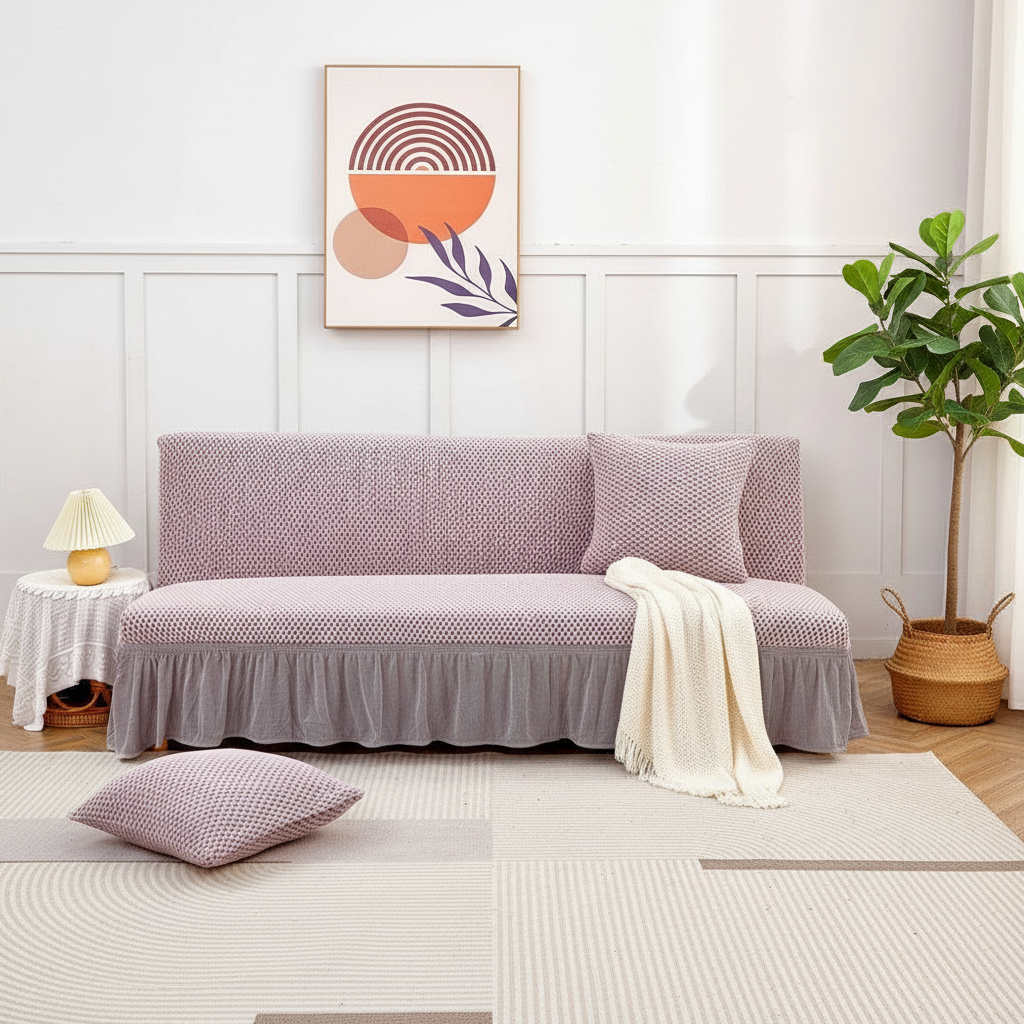 Offrez une nouvelle vie à votre intérieur avec notre housse de clic-clac rose poudré, rehaussée d'une élégante jupe plissée. Conçue en tissu tricoté extensible (95% polyester, 5% spandex), elle est douce, confortable et transforme instantanément votre canapé-lit en une pièce maîtresse de votre décoration, tout en le protégeant efficacement.
