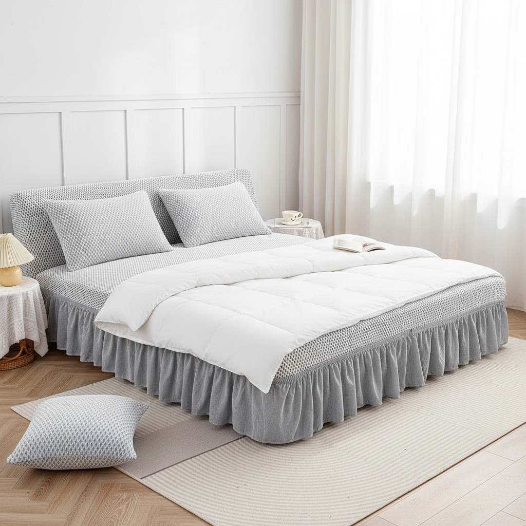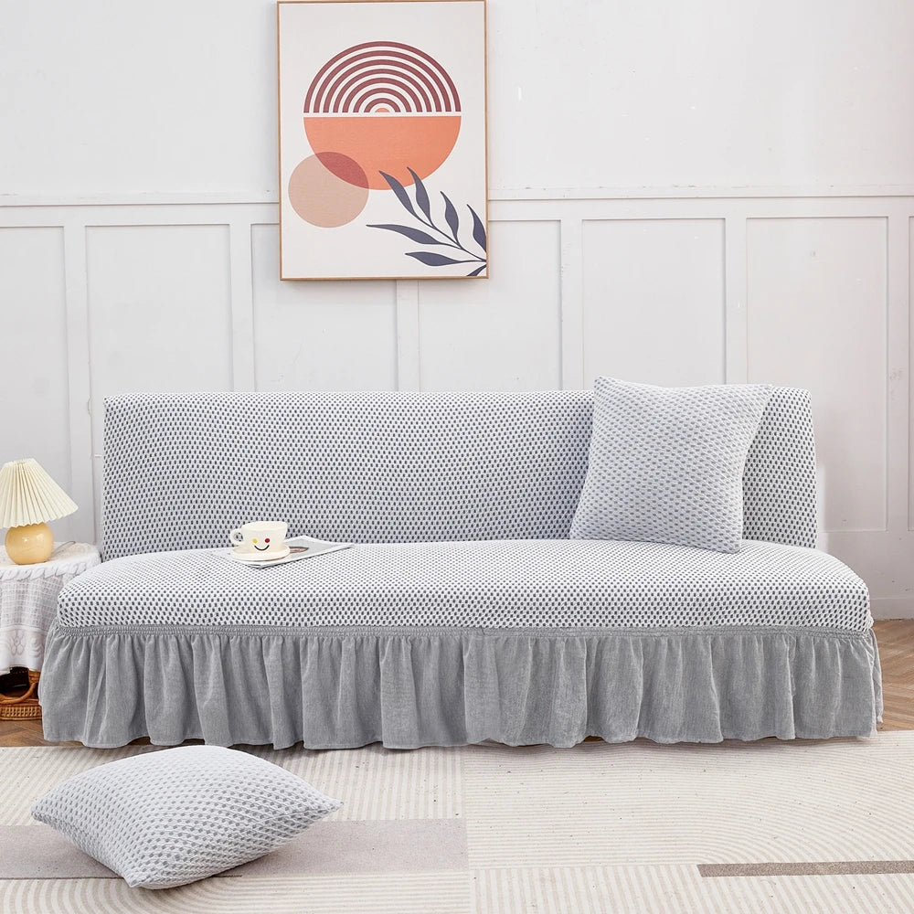 Transformez l'esthétique de votre intérieur avec notre housse de clic-clac grise pointillée, dotée d'une élégante jupe pour une finition impeccable. Confectionnée à partir d'un mélange doux de 95% polyester et 5% spandex, cette housse offre une extensibilité et un confort supérieurs, tout en protégeant efficacement votre canapé-lit des aléas du quotidien.