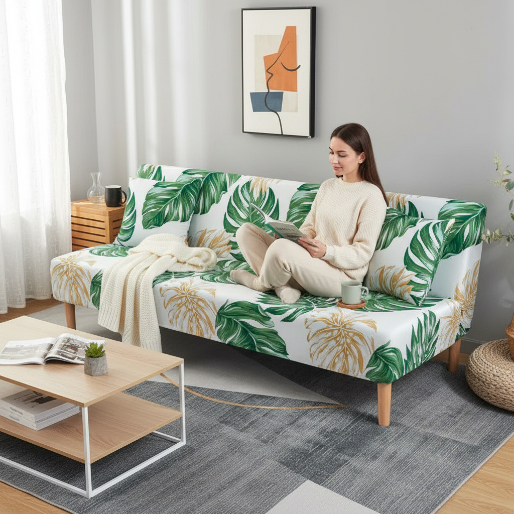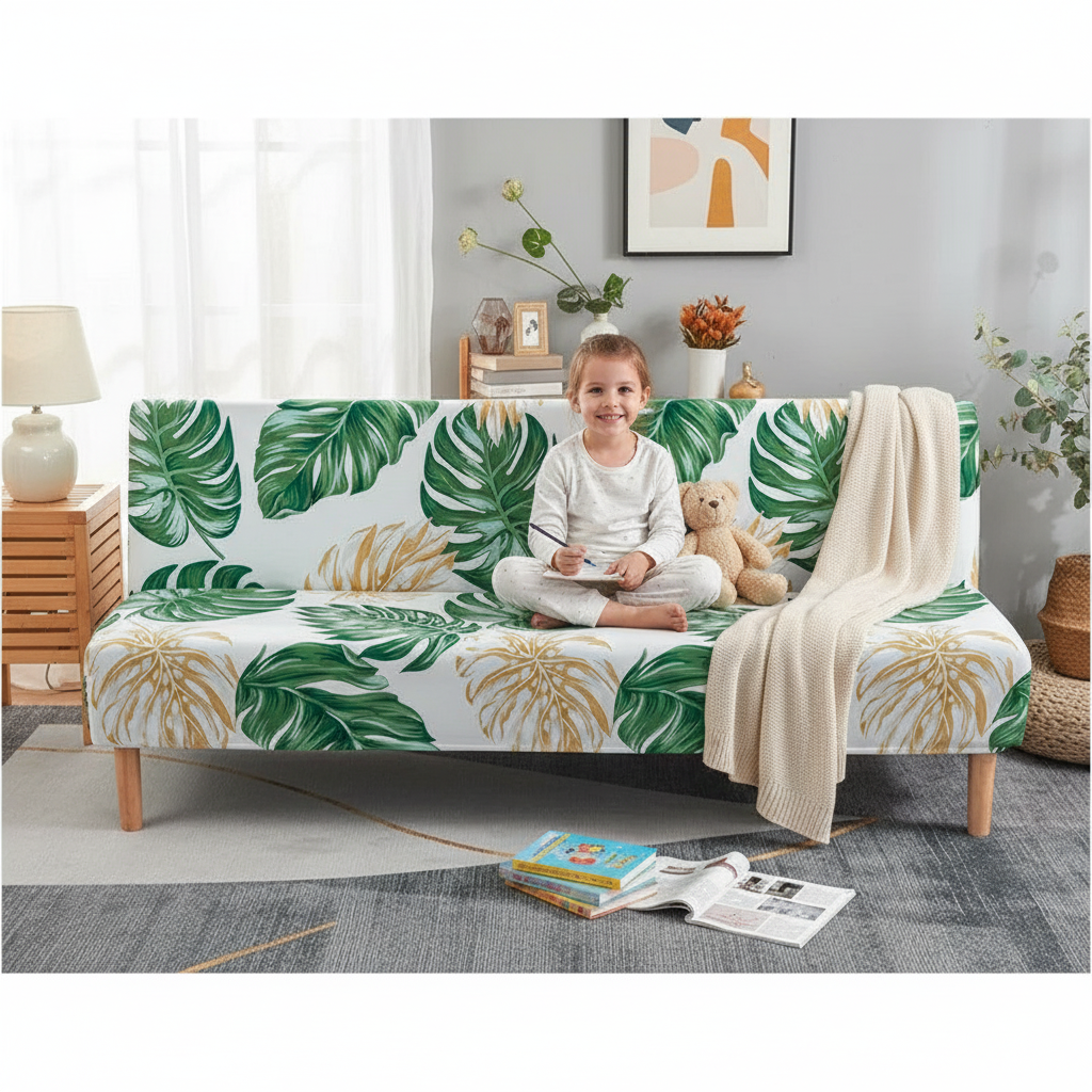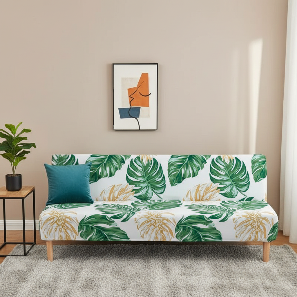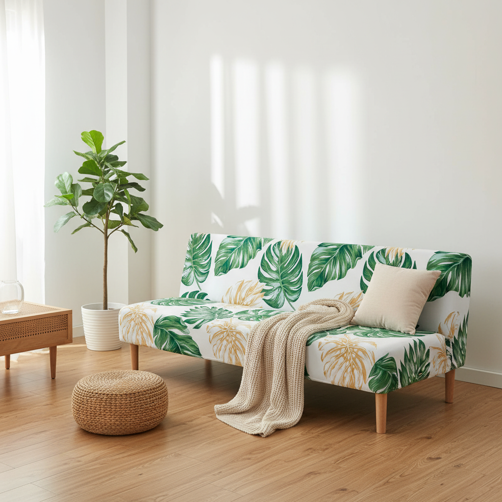 Apportez une touche d'évasion à votre intérieur avec notre housse de clic-clac en polyester brossé. Son motif tropical de feuilles vertes et or transforme instantanément votre canapé-lit en une pièce maîtresse vibrante et accueillante, idéale pour les saisons d'automne et d'hiver.Caractéristiques & compatibilités