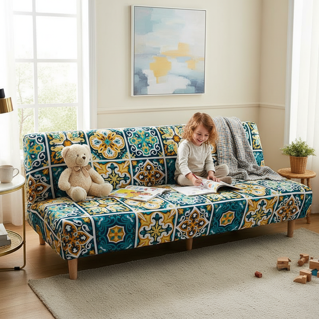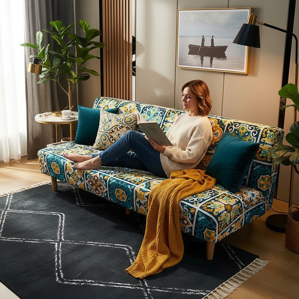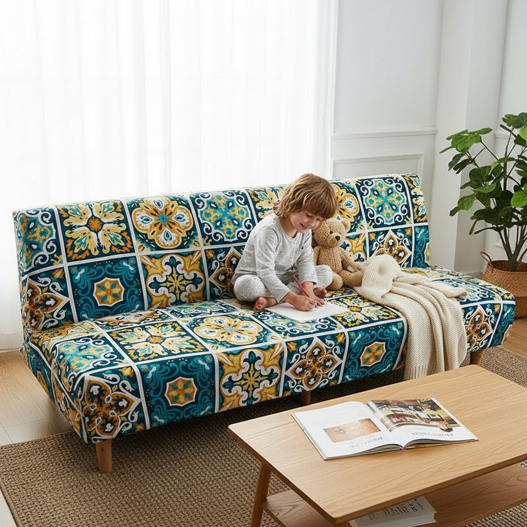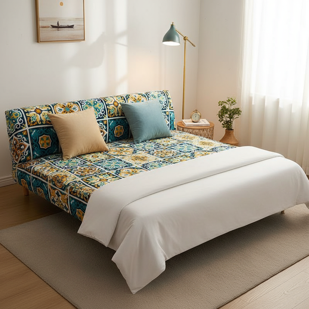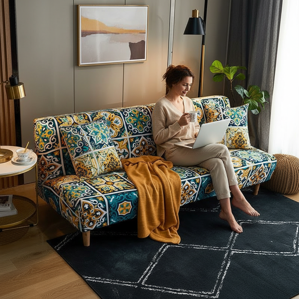 - Protection intégrale : Une housse complète qui couvre entièrement votre canapé-lit.