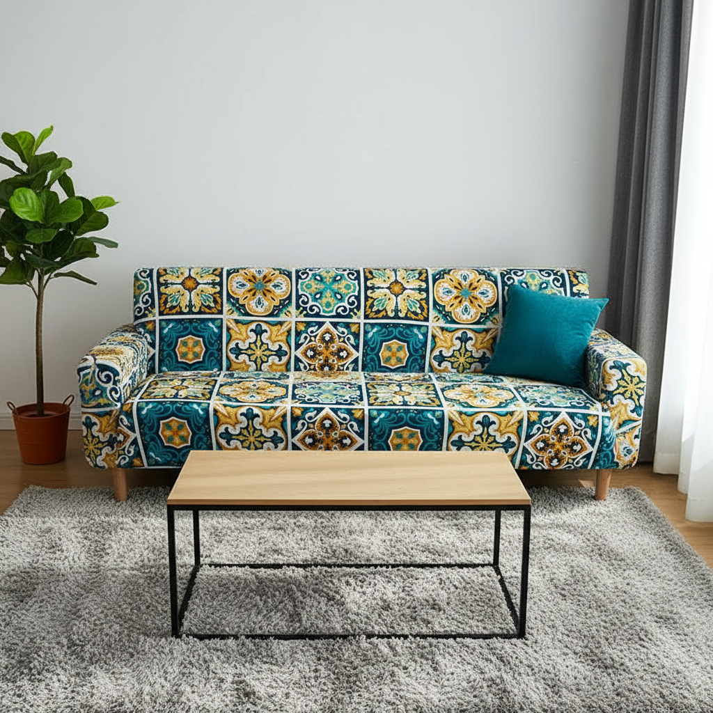 Transformez votre intérieur avec notre housse de clic-clac en polyester, arborant un éclatant motif mosaïque bleu et jaune. Son style géométrique brossé apporte une touche contemporaine et chaleureuse, idéale pour les saisons d'automne et d'hiver.