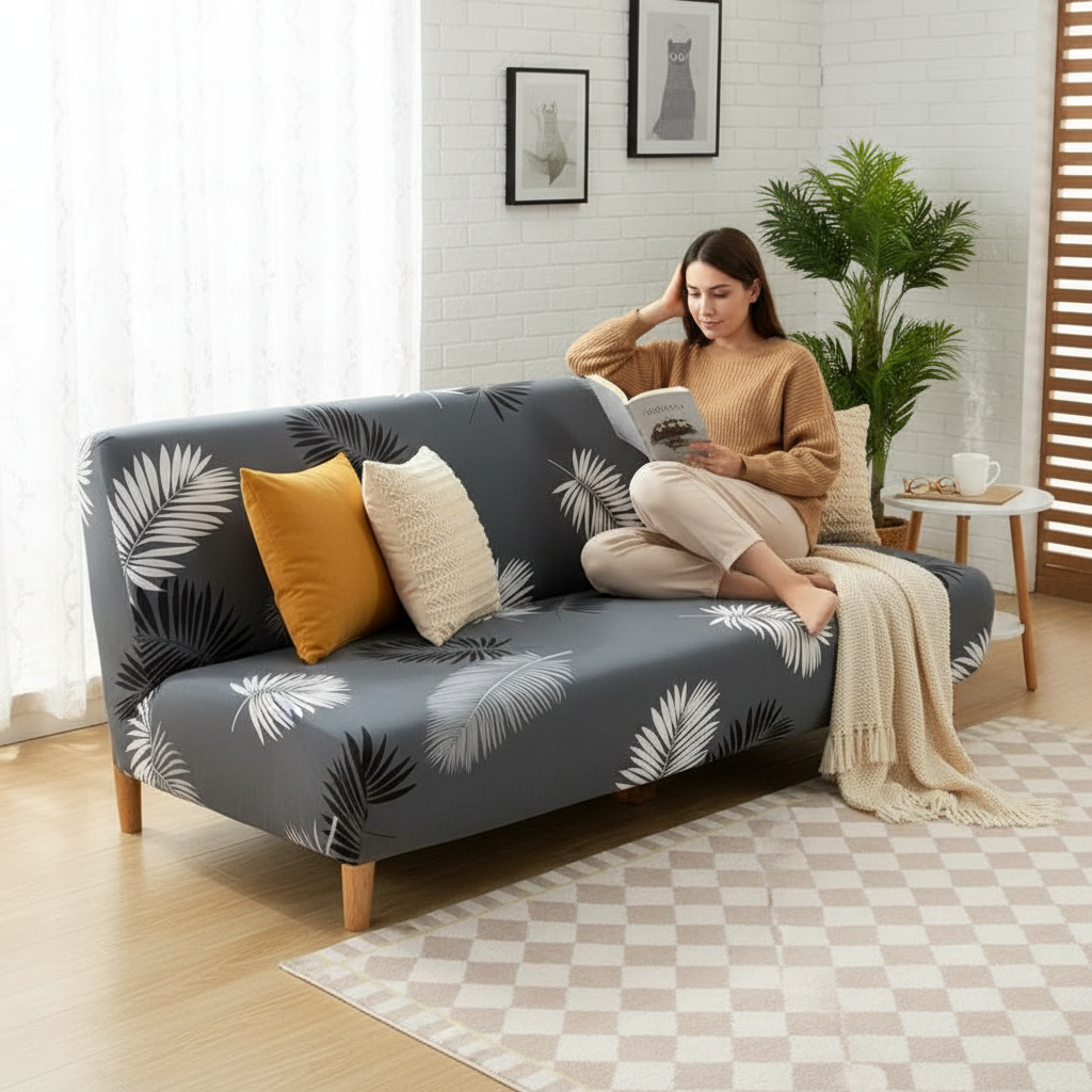 Cette housse est spécialement conçue pour s'adapter aux canapés-lits de type futon, offrant une couverture complète et un ajustement optimal.