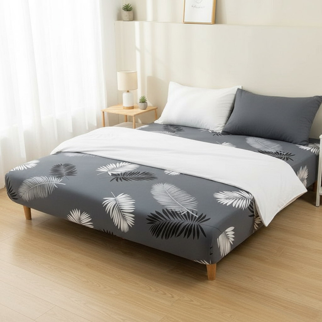 - Design moderne : Son style géométrique avec un motif de feuilles de palmier gris et blanc apporte une esthétique rafraîchissante.