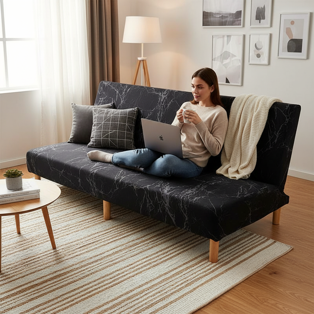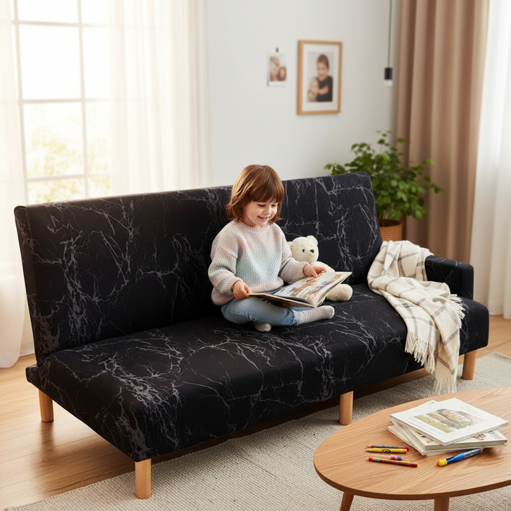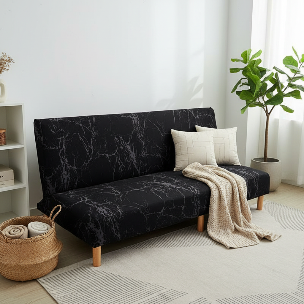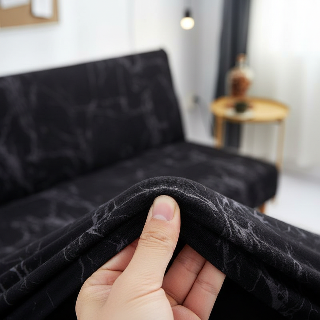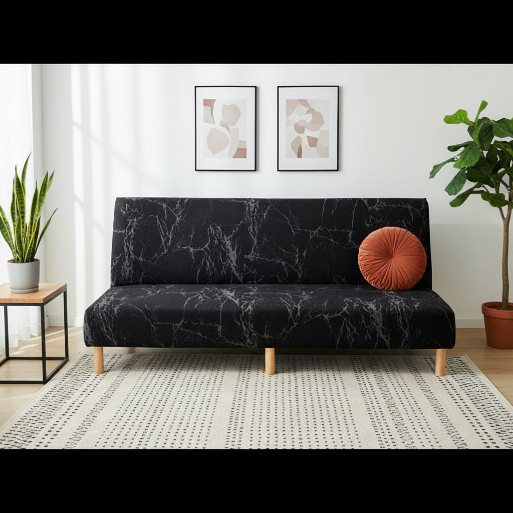 Sublimez votre espace de vie avec notre housse de clic-clac en polyester, une protection intégrale et stylée pour votre canapé futon. Conçue avec un tissu tricoté brossé de 140 g/m², elle offre une sensation douce et un confort appréciable, tout en apportant une esthétique moderne grâce à son élégant motif marbré noir.Caractéristiques & compatibilités