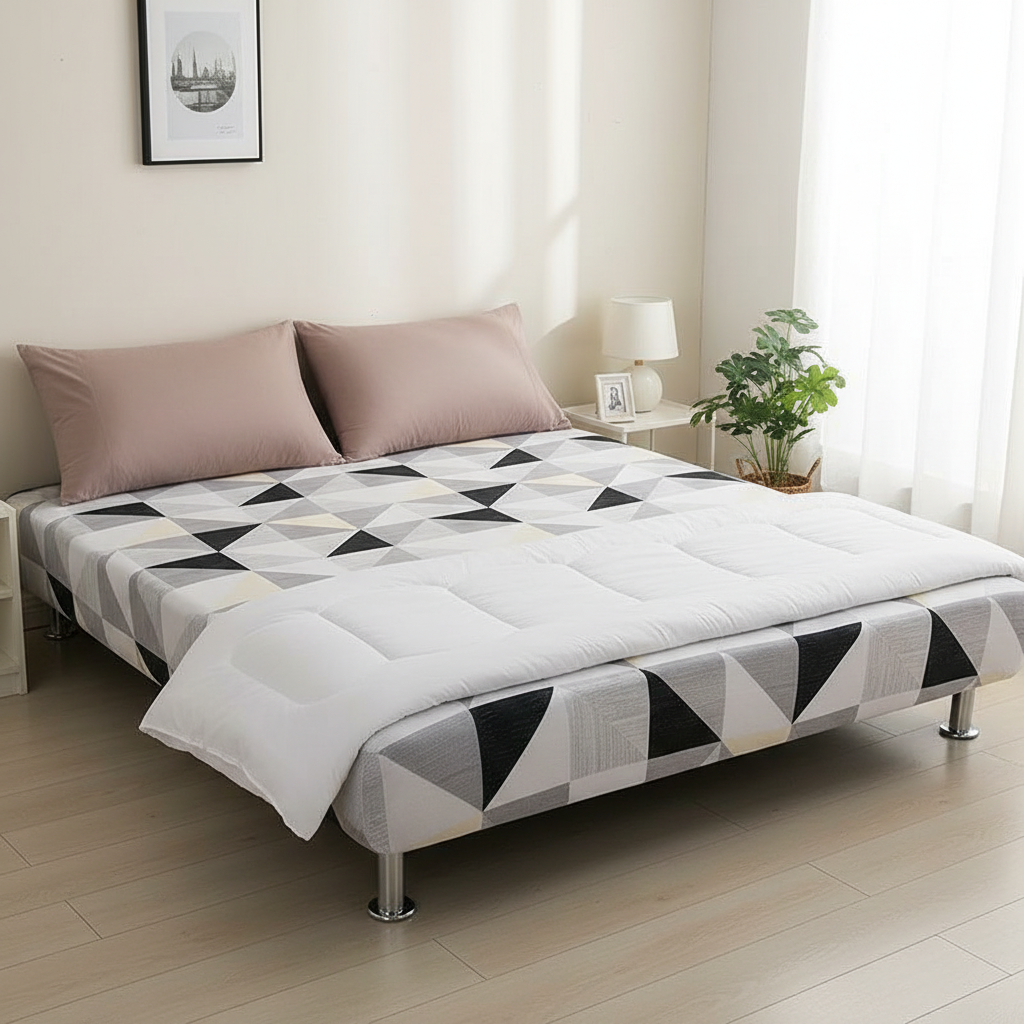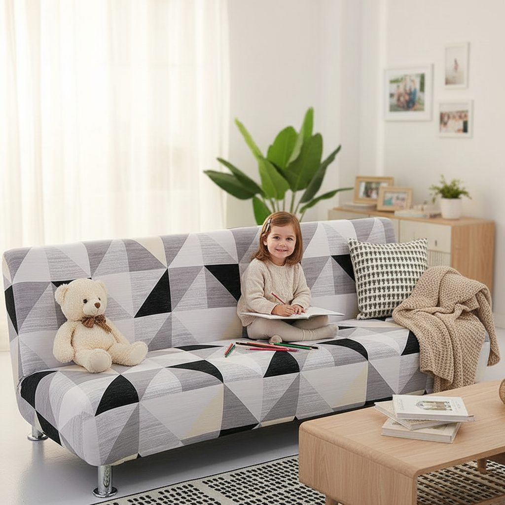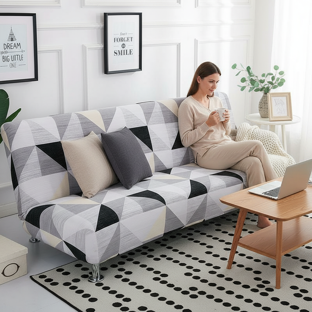 Conçue pour les canapés-lits de type futon, cette housse intégrale assure une couverture complète et protectrice. Son style géométrique moderne s'adapte à de nombreux intérieurs, offrant une solution simple pour renouveler votre décoration.