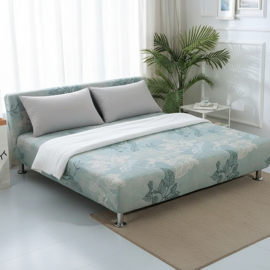 Transformez votre espace de vie avec notre housse de clic-clac, conçue pour allier esthétique et fonctionnalité. Fabriquée en polyester tricoté avec un style brossé, elle offre un toucher doux et une adaptabilité parfaite à votre canapé-lit, renouvelant son allure instantanément. Son motif feuillage aqua apporte une touche de fraîcheur et de sérénité à votre intérieur.Caractéristiques & compatibilités