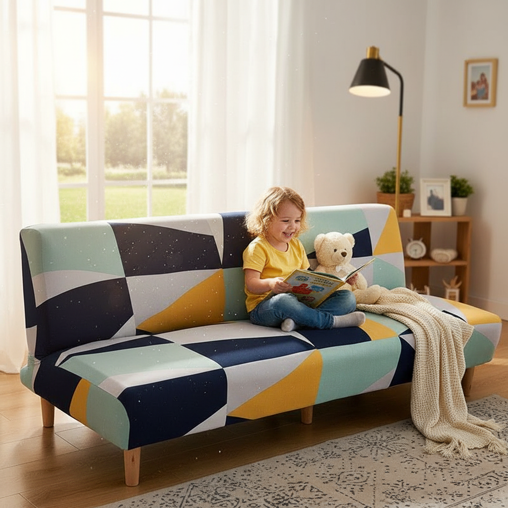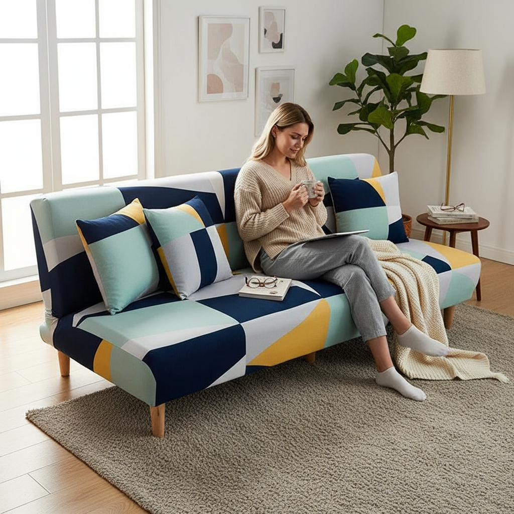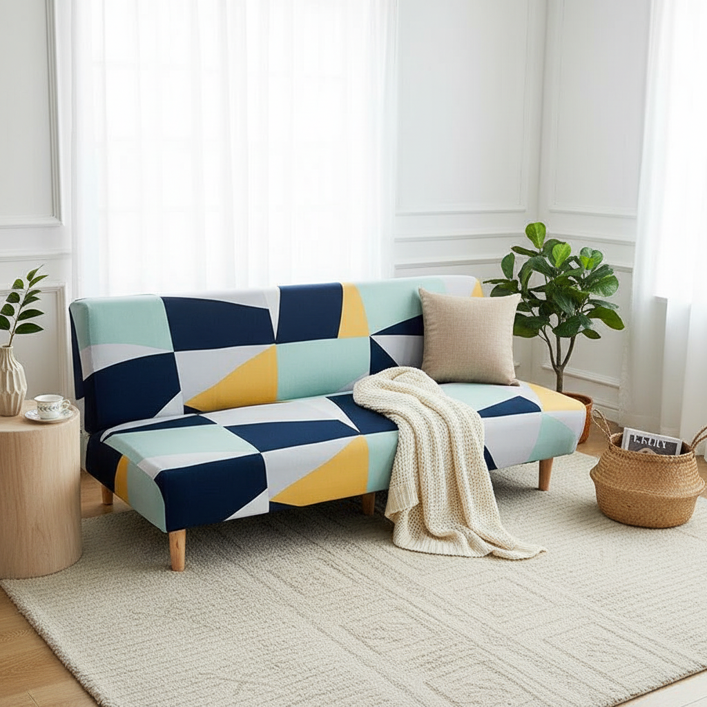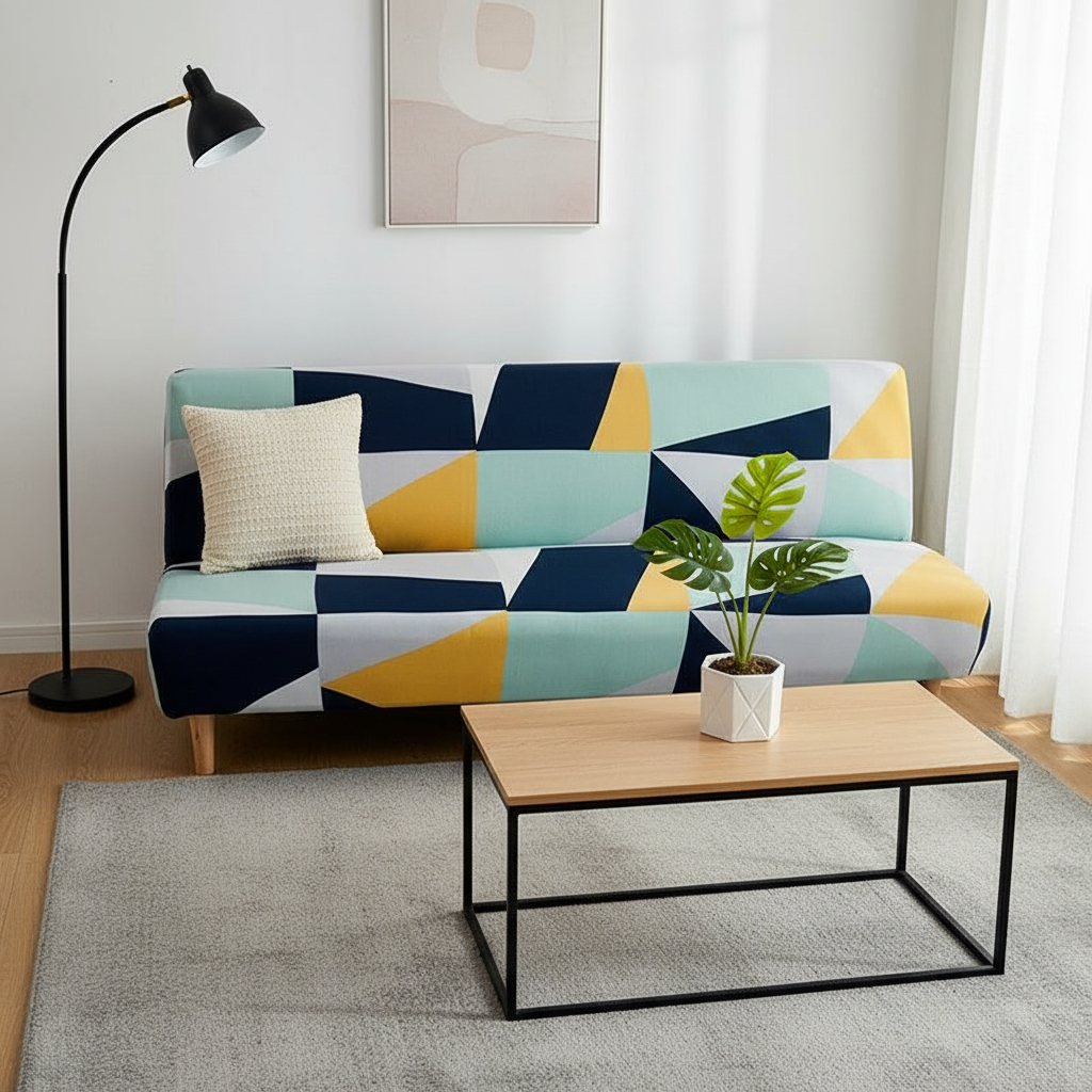 Transformez instantanément votre intérieur avec notre housse de clic-clac aux motifs géométriques multicolores. Conçue en polyester doux et brossé, elle apporte une touche de modernité et de gaieté, tout en offrant une protection efficace et un confort accru à votre canapé-lit.