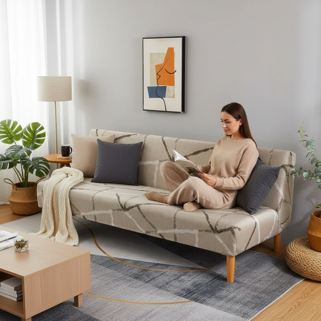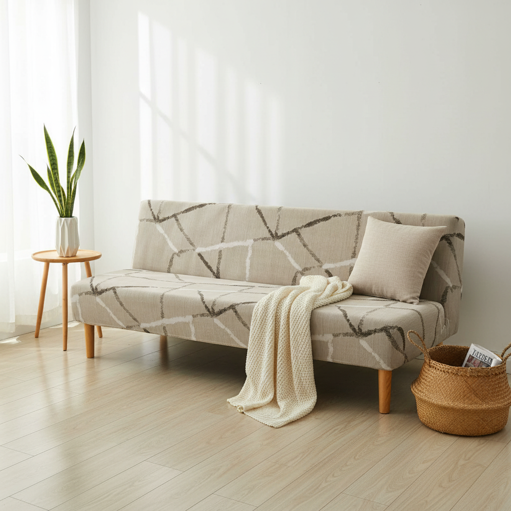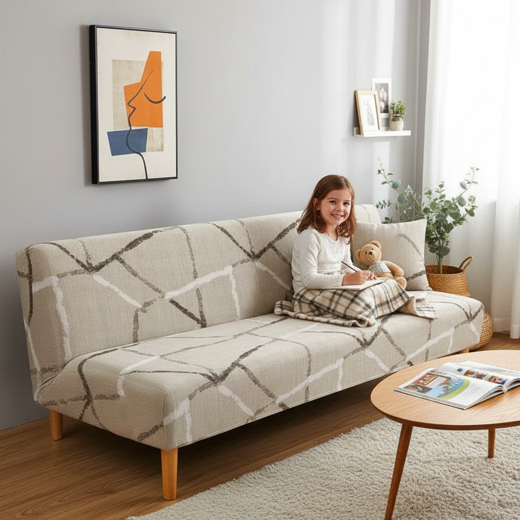 Spécialement conçue pour les canapés-lits de type futon, cette housse offre une couverture intégrale, enveloppant votre meuble avec élégance et protection. Elle s'adapte à la forme de votre clic-clac, assurant une tenue impeccable sans accoudoirs.