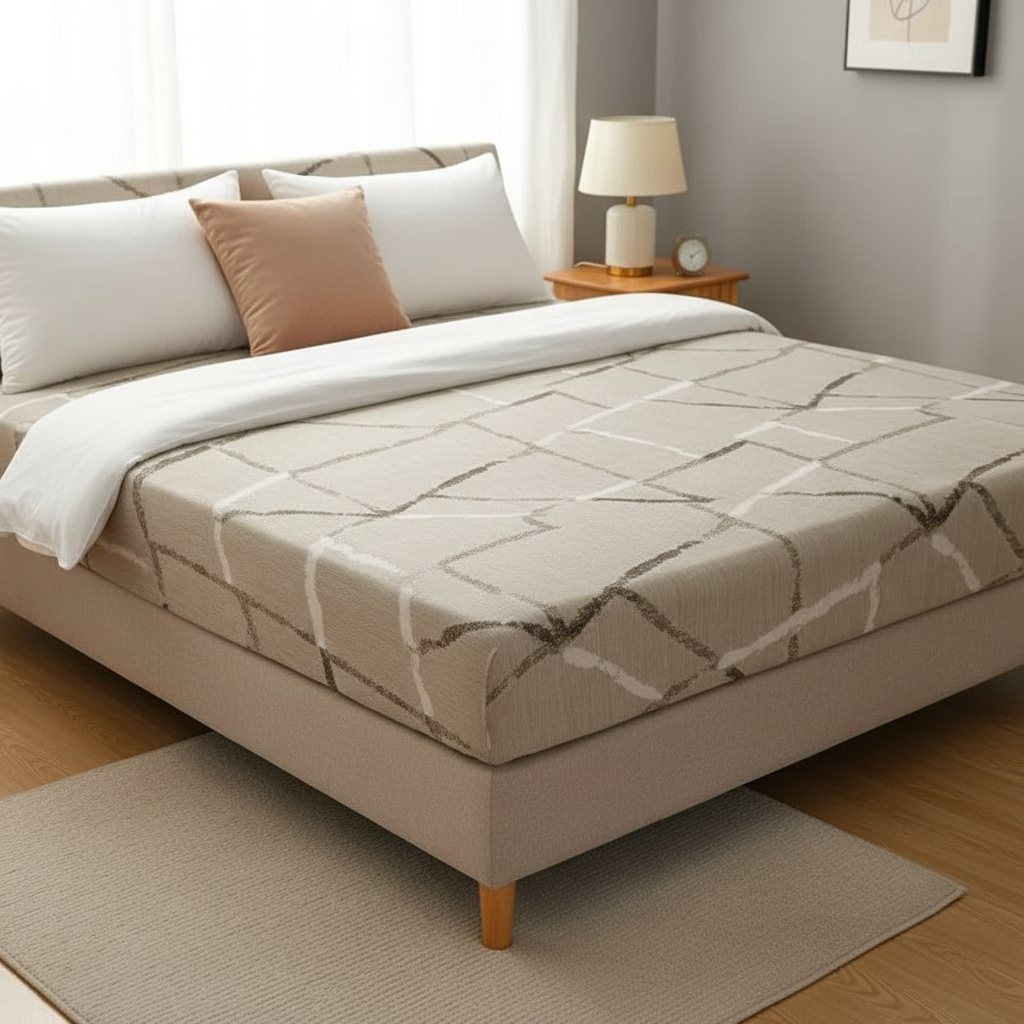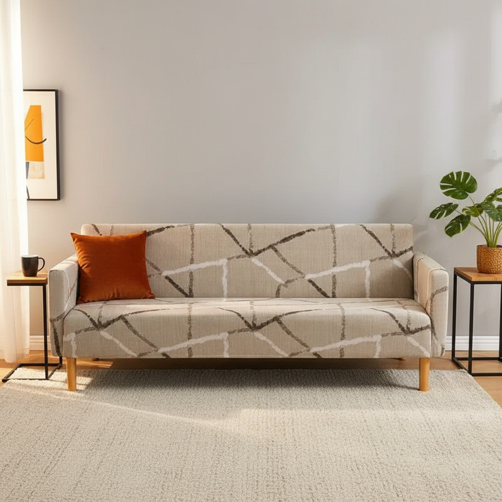 Découvrez notre housse de clic-clac géométrique aux motifs noir et gris sur fond clair, conçue pour transformer et protéger votre canapé-lit. Fabriquée en polyester tricoté avec un style brossé, elle offre une texture douce et un confort appréciable, parfaite pour les saisons d'automne et d'hiver. Son design moderne s'intègre avec élégance à tout intérieur.