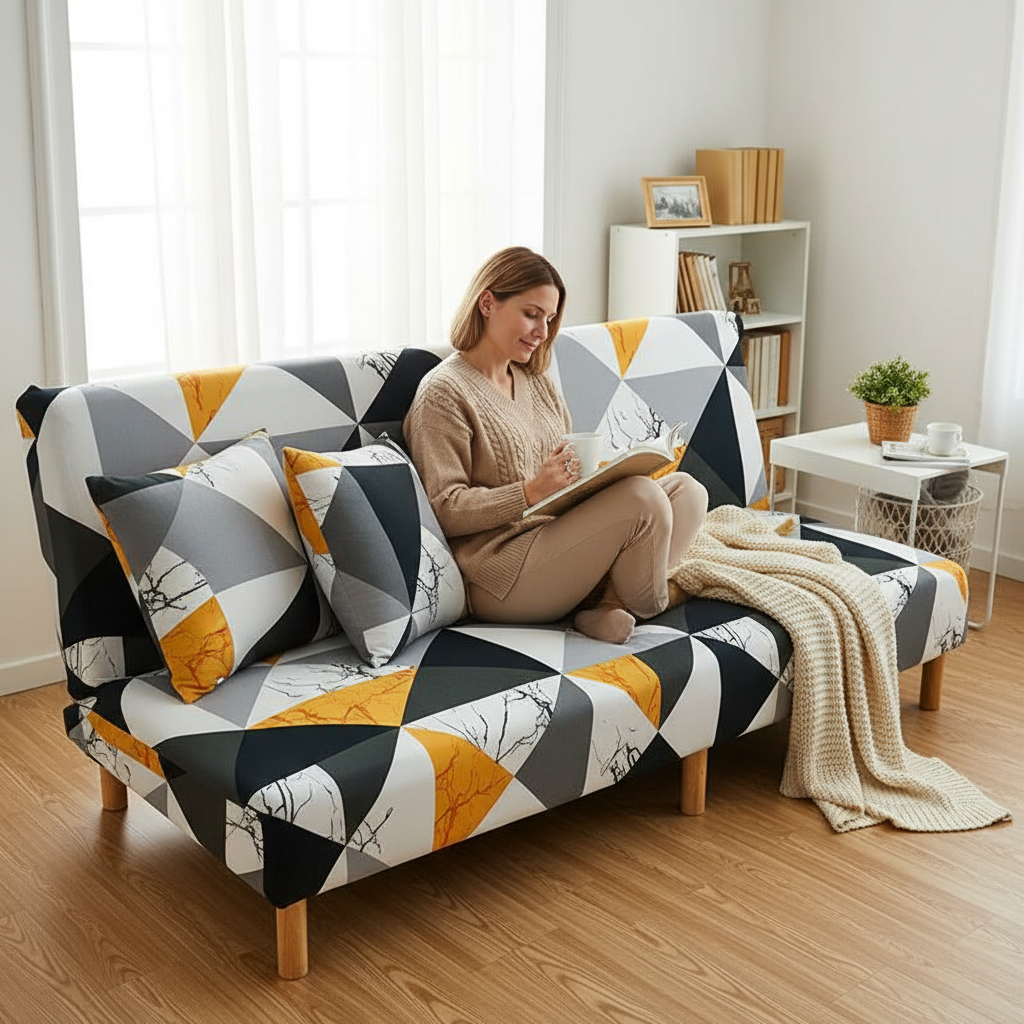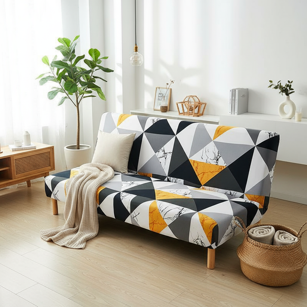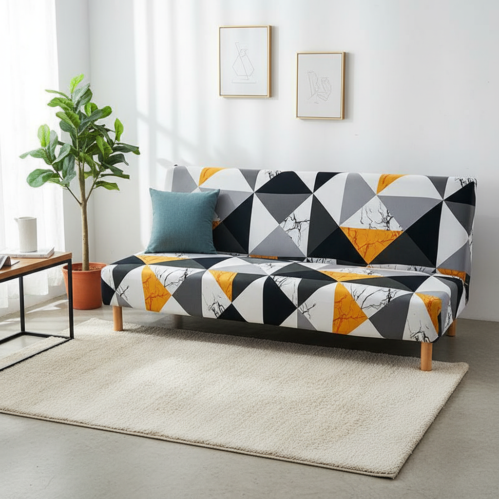 Transformez votre intérieur avec notre housse de clic-clac au design géométrique moderne. Son motif unique inspiré du marbre, aux teintes de jaune éclatant, noir et gris, apporte une touche d'élégance contemporaine. Conçue en polyester tricoté brossé de 140gsm, elle offre à la fois douceur et une protection intégrale pour votre canapé convertible.