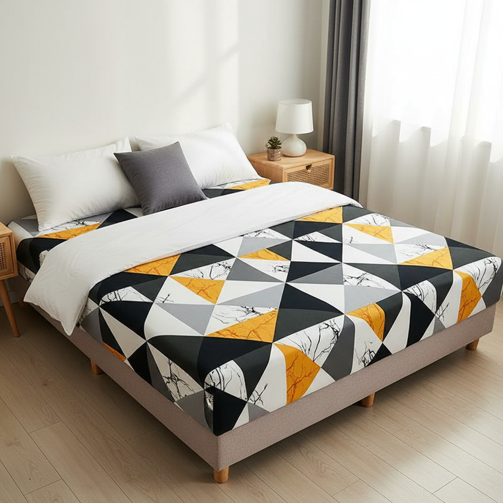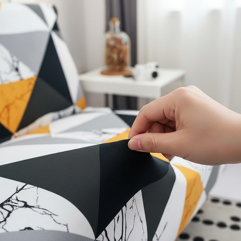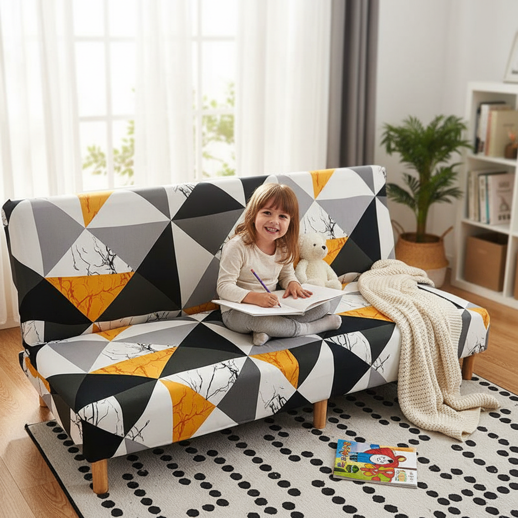 Transformez votre intérieur avec notre housse de clic-clac au design géométrique moderne. Son motif unique inspiré du marbre, aux teintes de jaune éclatant, noir et gris, apporte une touche d'élégance contemporaine. Conçue en polyester tricoté brossé de 140gsm, elle offre à la fois douceur et une protection intégrale pour votre canapé convertible.