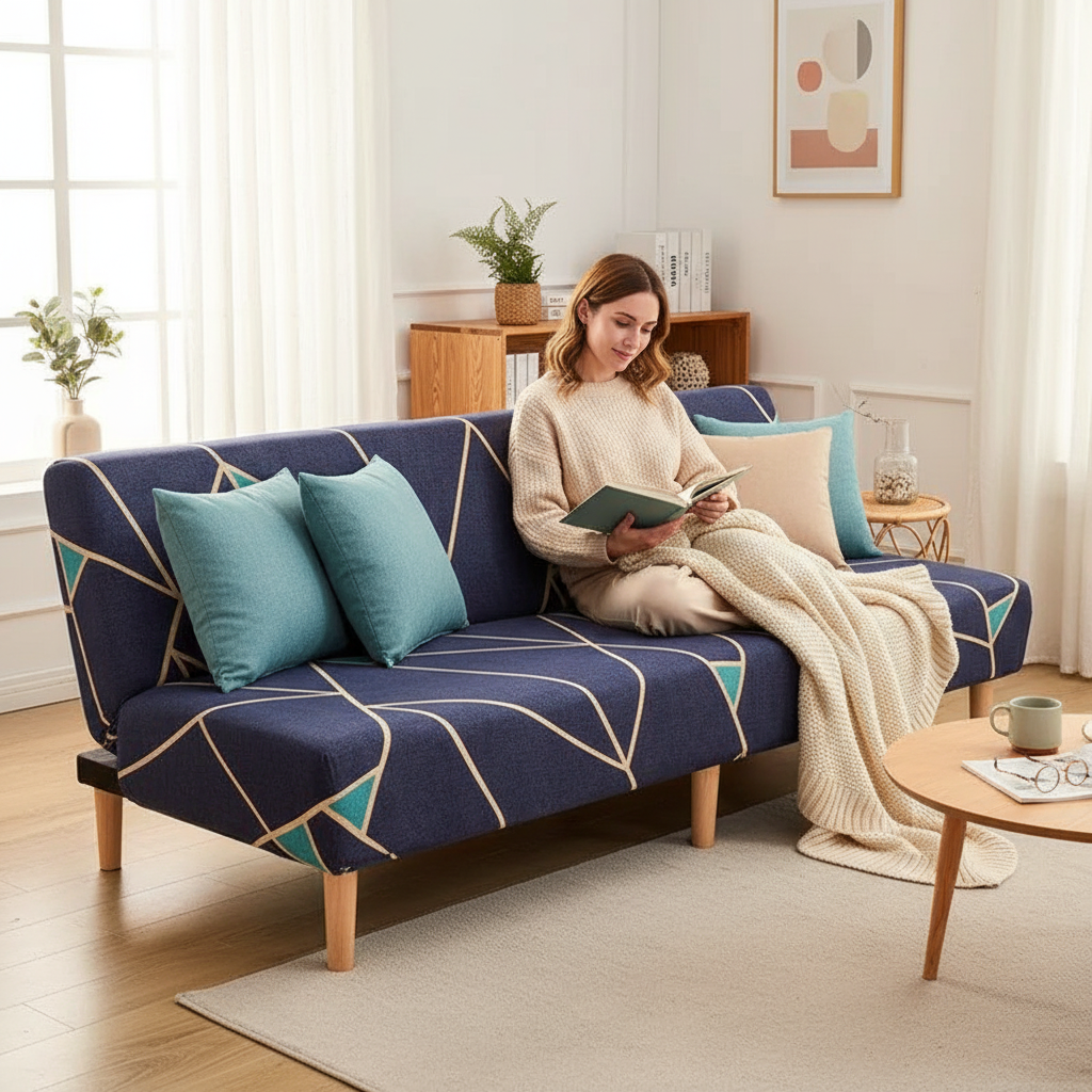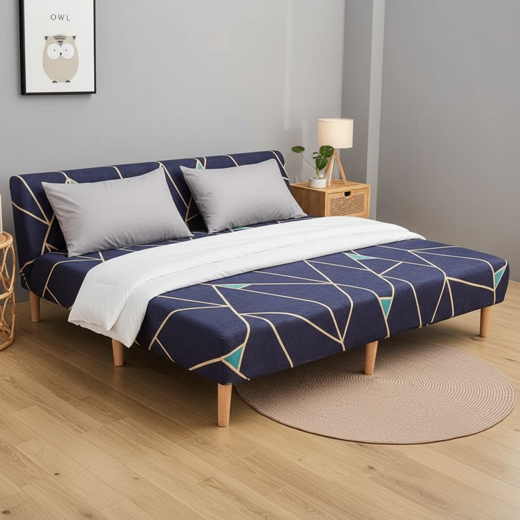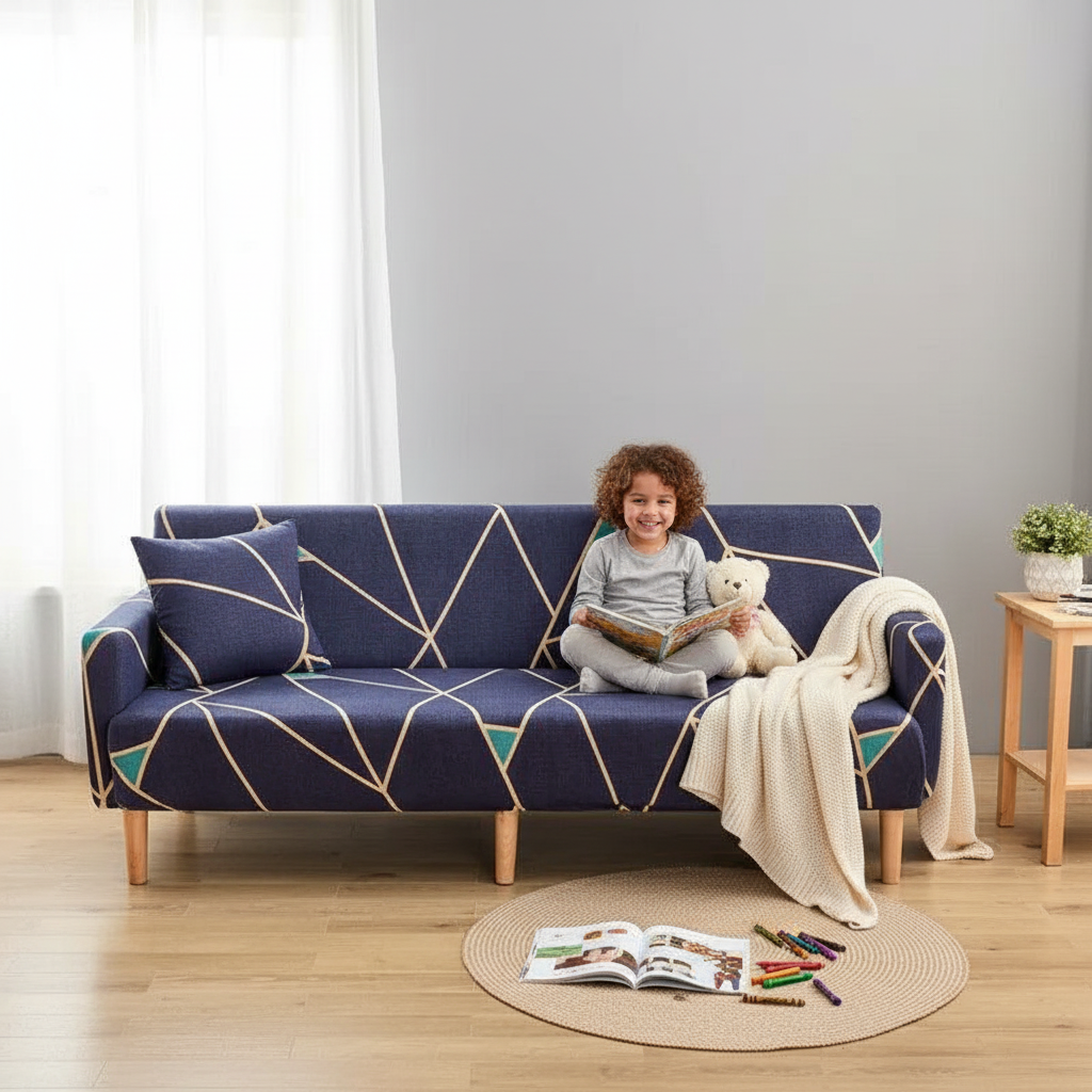 Housse de clic-clac géométrique bleue stretch pour un style moderne Transformez votre intérieur avec notre housse de clic-clac géométrique bleue,...