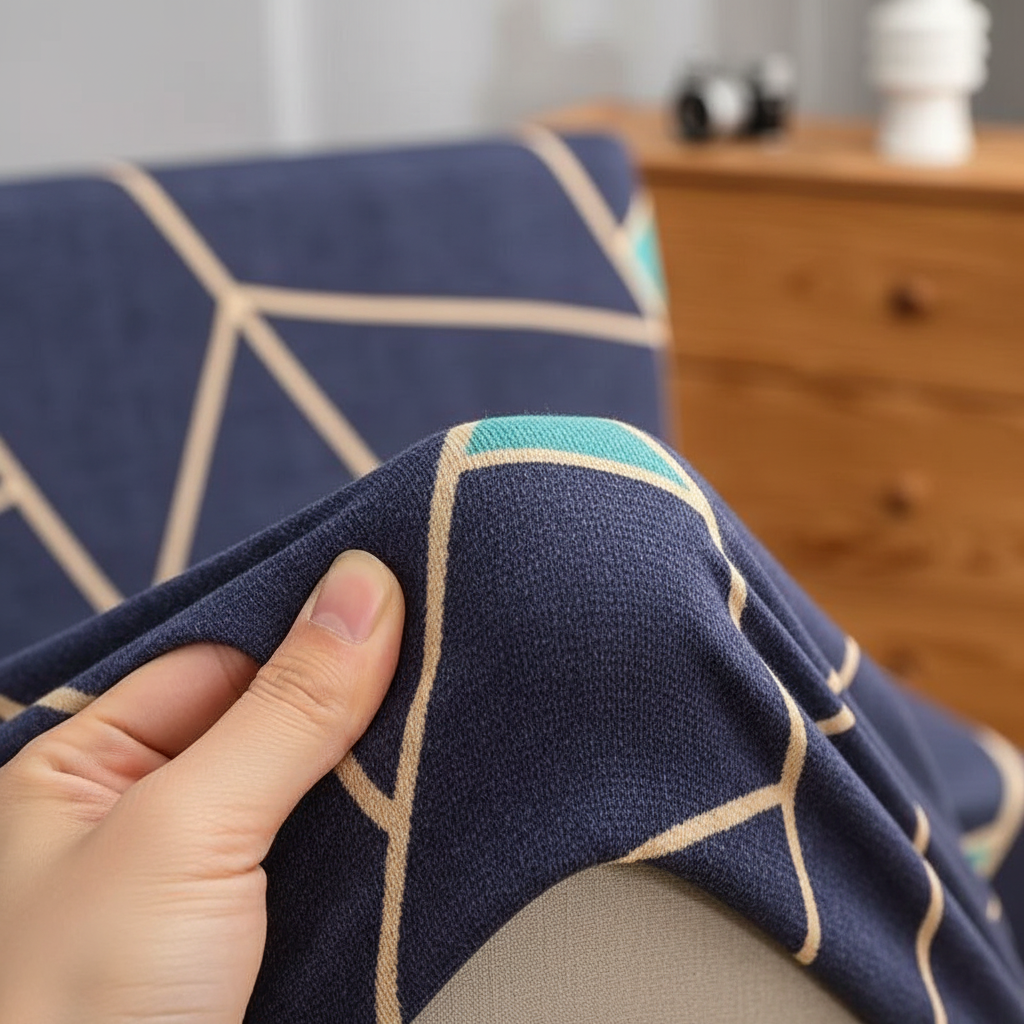 Housse de clic-clac géométrique bleue stretch pour un style moderne