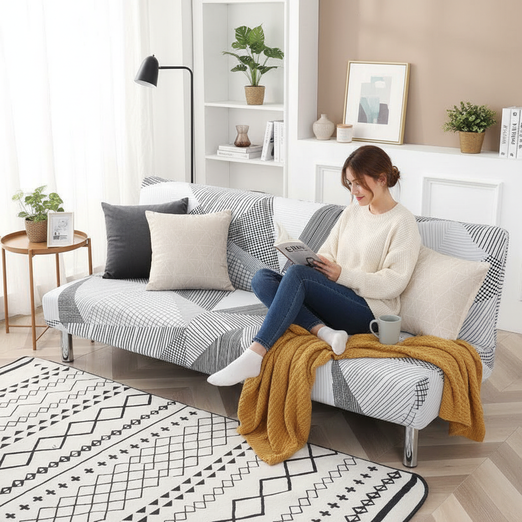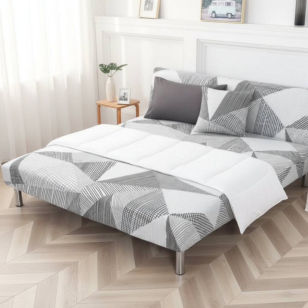 Cette housse est spécifiquement adaptée aux canapés-lits de type futon, offrant une couverture complète pour une protection optimale. Sa conception permet de rafraîchir l'esthétique de votre banquette convertible sans effort, la rendant idéale pour les espaces de vie dynamiques.