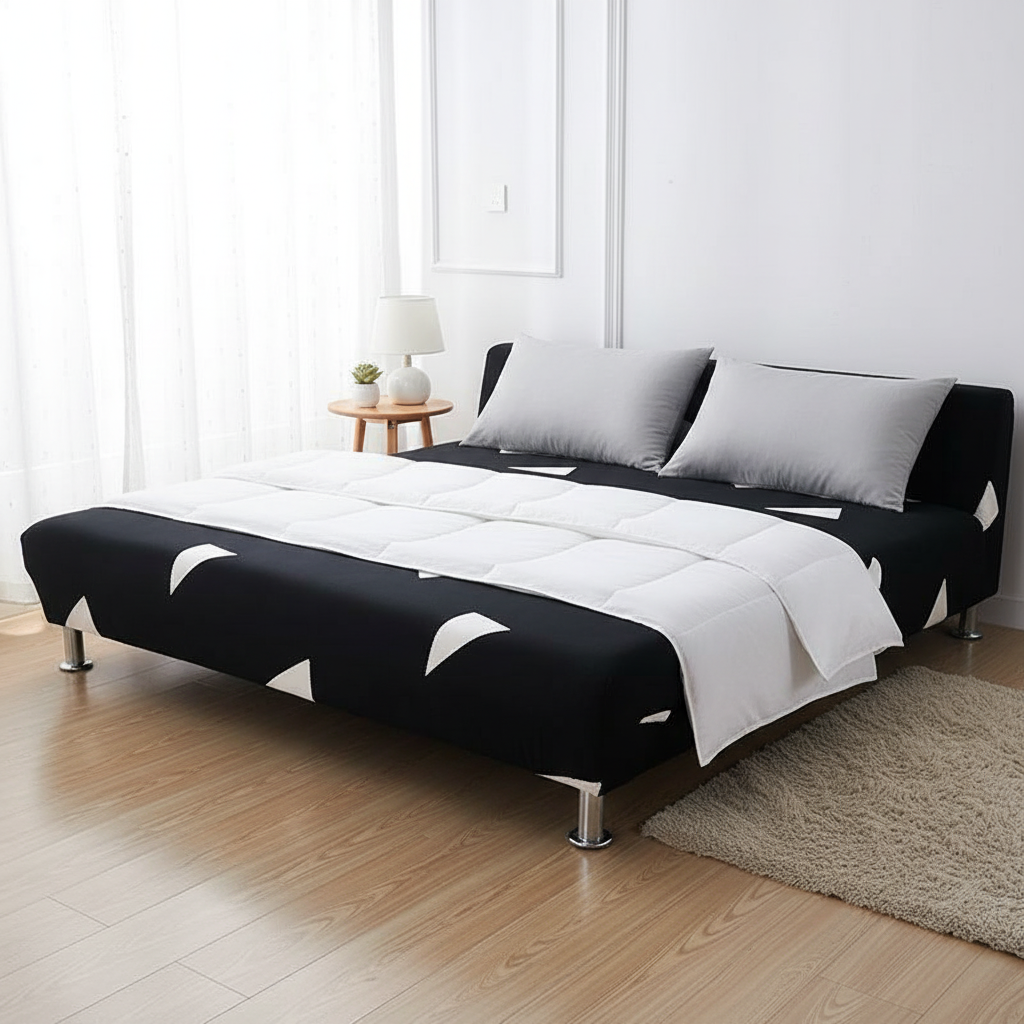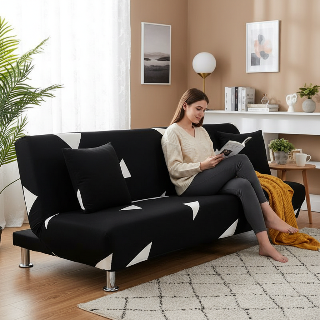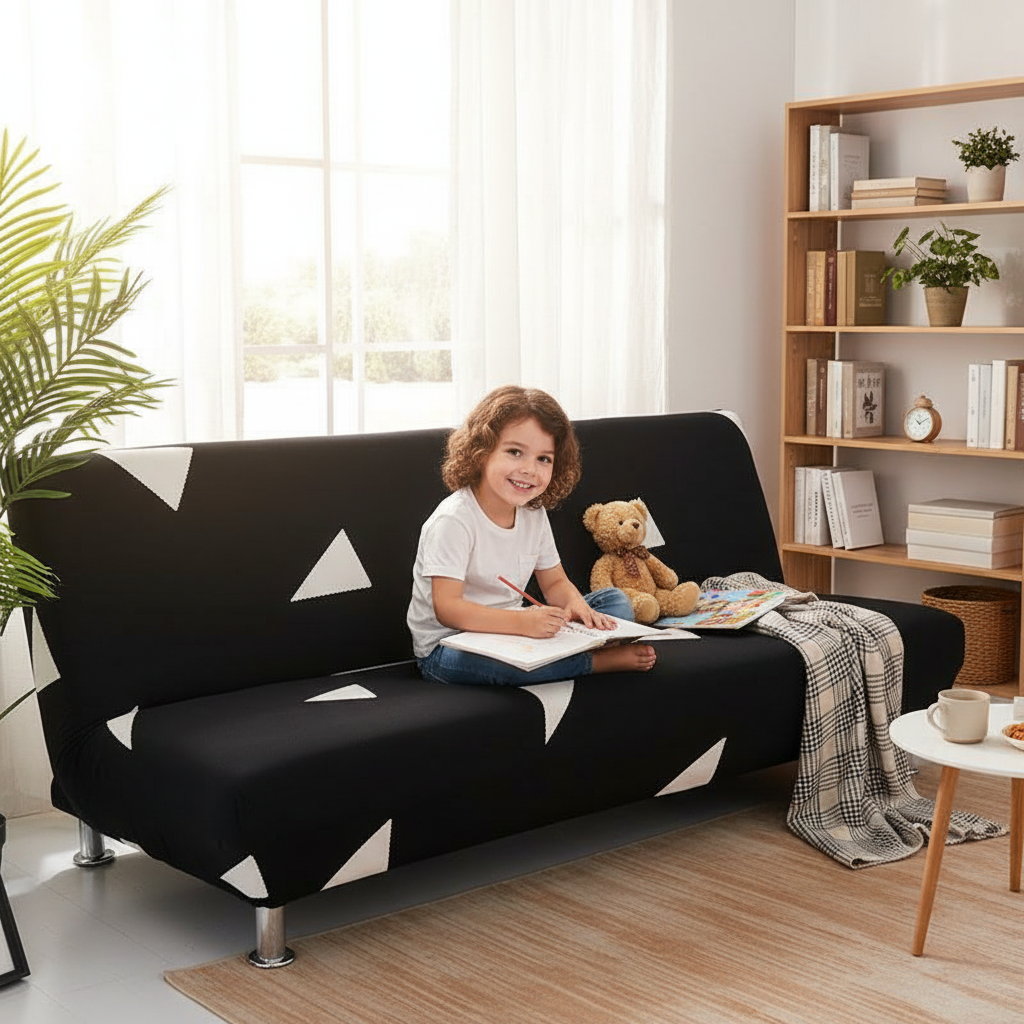 Cette housse intégrale est spécialement conçue pour s'adapter aux canapés-lits de type futon, communément appelés clic-clac ou banquettes convertibles. Sa confection assure une couverture complète, protégeant ainsi l'ensemble de votre meuble.