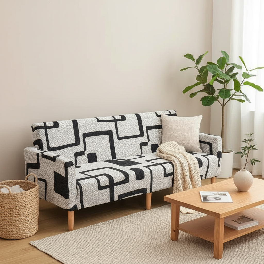 Transformez instantanément votre intérieur avec notre housse de clic-clac au motif géométrique noir et clair. Confectionnée en polyester tricoté avec un style brossé, elle offre une texture douce et un confort agréable, tout en apportant une touche de modernité dynamique à votre espace de vie.