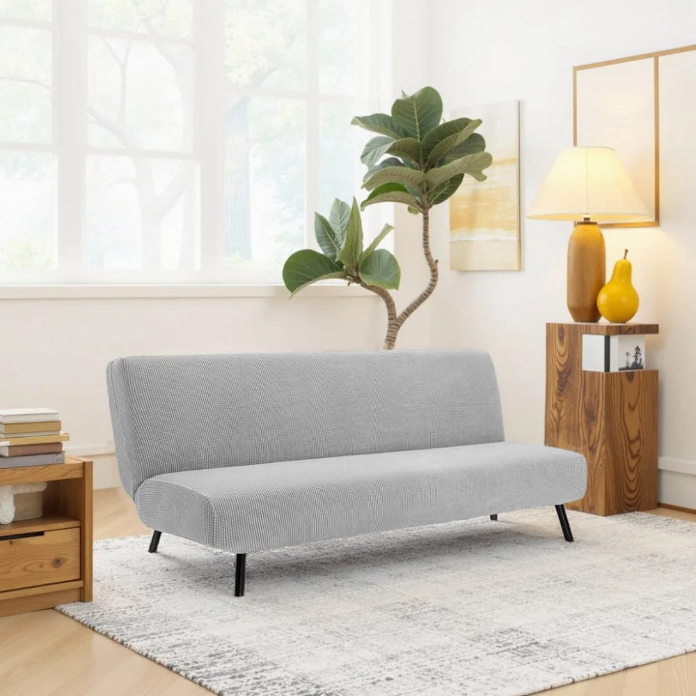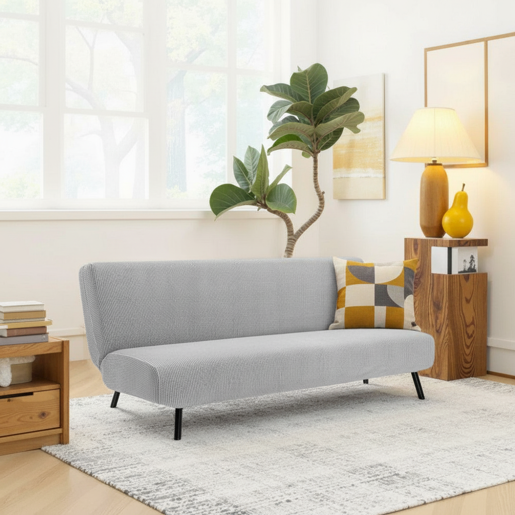 Offrez une seconde vie à votre intérieur avec notre housse de clic-clac gris chiné, conçue en polyester résistant. Son tissu jacquard tricoté, au style uni et discret, apporte une touche d'élégance moderne tout en protégeant intégralement votre mobilier. Grâce à sa conception élastique, elle s'adapte parfaitement aux formes de votre canapé-lit.