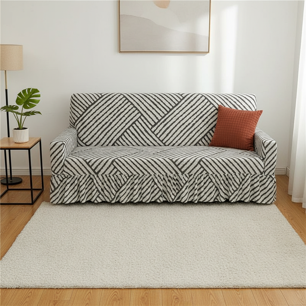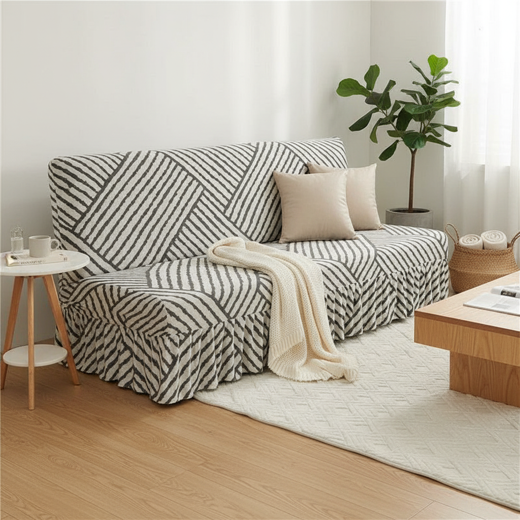 Transformez votre espace avec notre housse de clic-clac en polyester, arborant un motif géométrique moderne et un élégant plissé. Conçue pour allier style et praticité, elle offre une protection complète à votre canapé-lit tout en étant incroyablement facile à entretenir.