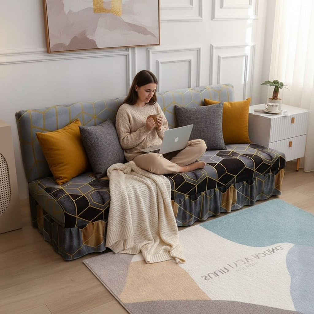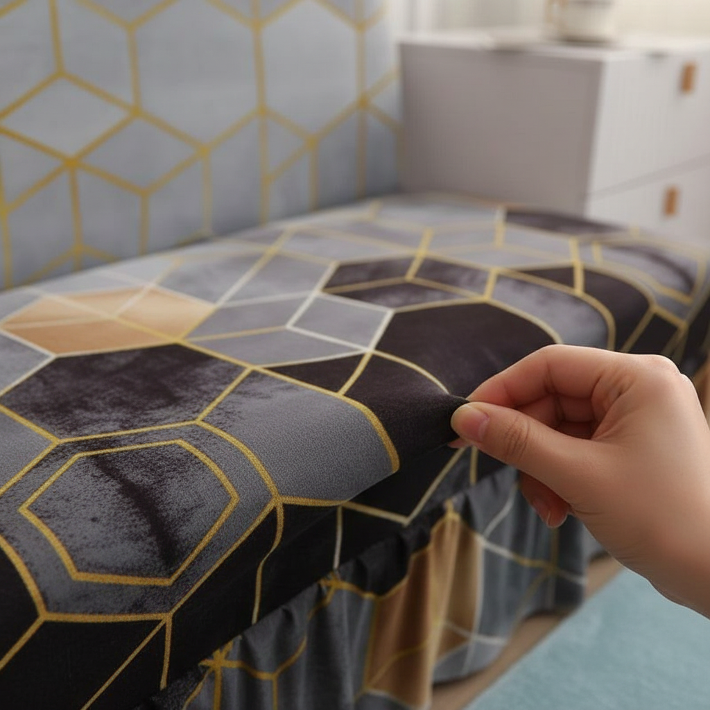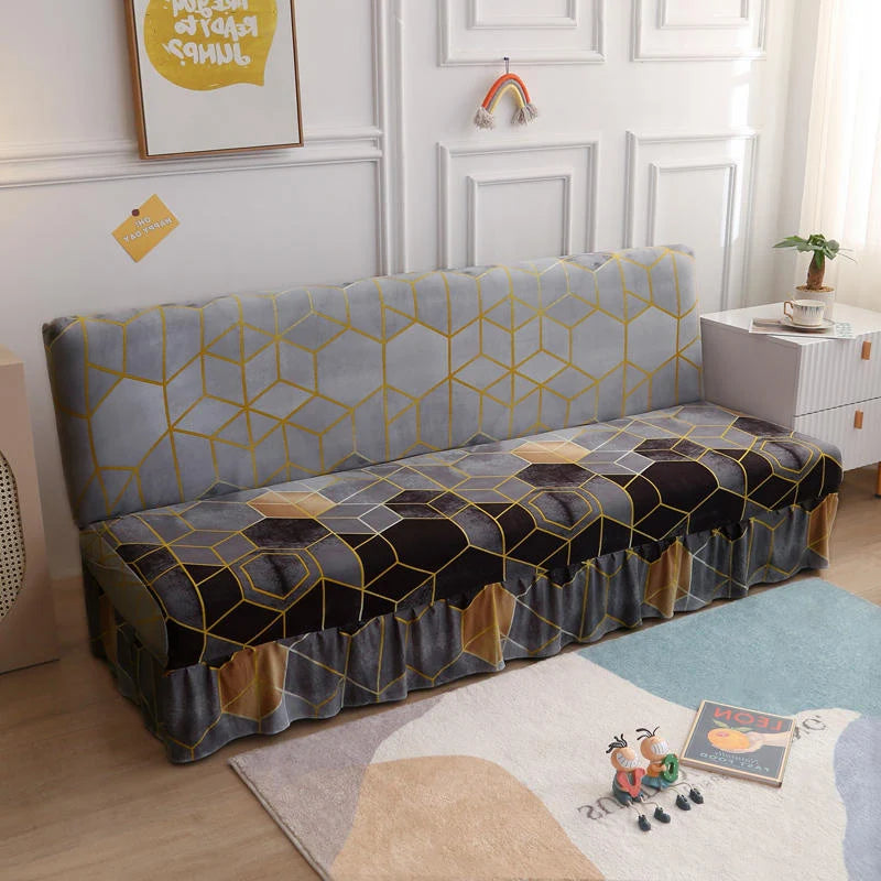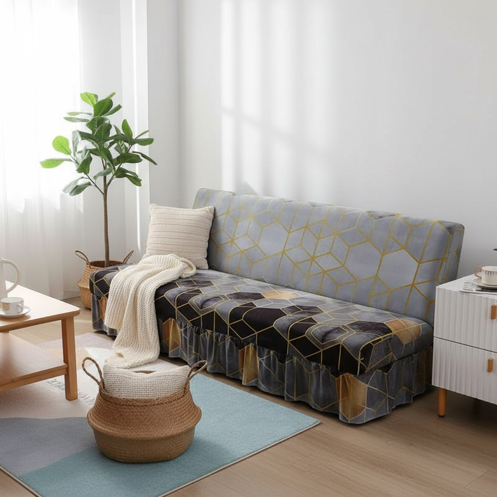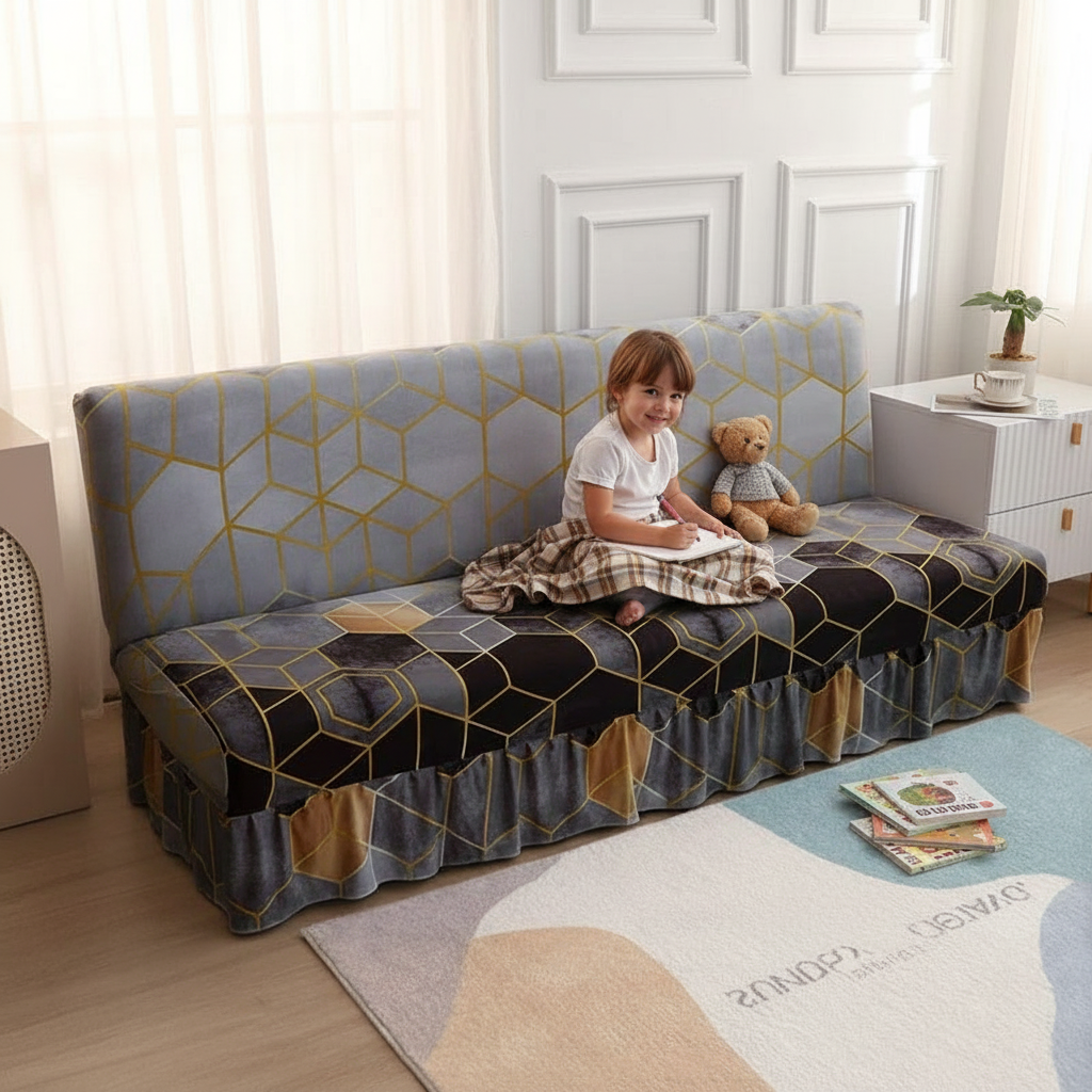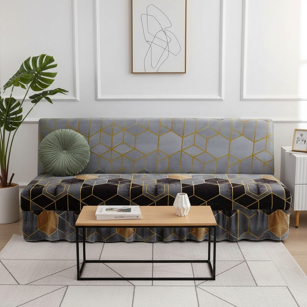 Transformez l'esthétique de votre intérieur avec notre housse de clic-clac en polyester, arborant un élégant motif géométrique gris doré. Conçue pour épouser parfaitement les formes de votre canapé-lit, elle offre une protection complète et un style moderne pour toutes les saisons.
