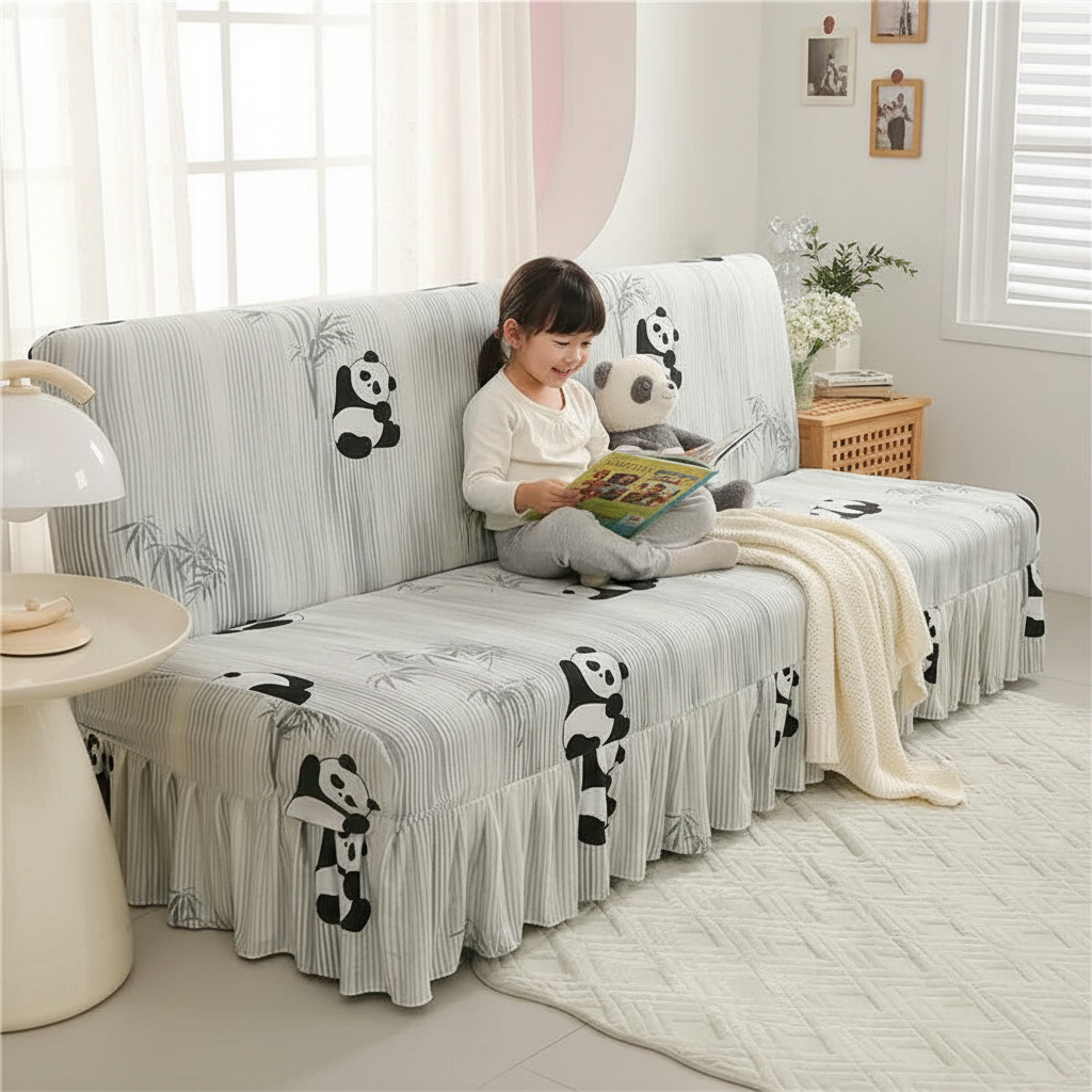Apportez une touche de fantaisie et de douceur à votre intérieur avec notre housse de clic-clac extensible. Conçue en polyester tricoté, elle allie protection efficace et style unique, transformant votre canapé-lit en un clin d'œil. Son motif panda et bambou, associé à une jupe élégante, crée une ambiance apaisante et tendance pour le printemps et l'été.
