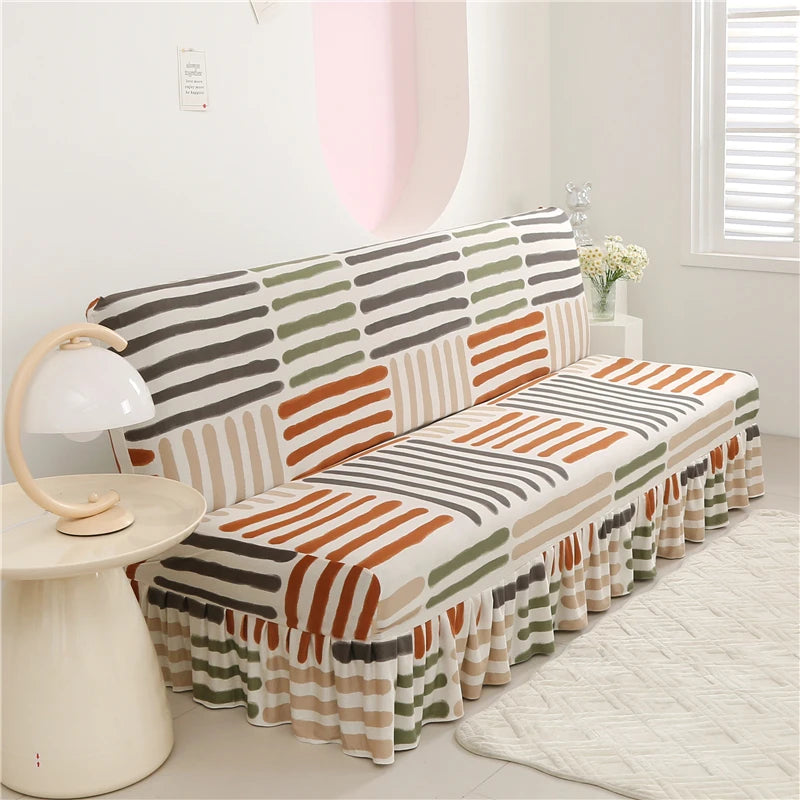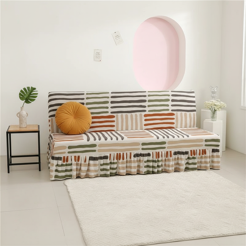 Sublimez votre espace avec notre housse de clic-clac extensible, arborant de captivants motifs géométriques abstraits aux nuances automnales. Conçue en polyester tricoté de haute qualité, elle offre une protection complète et un style renouvelé à votre canapé-lit, agrémenté d'une élégante jupe plissée.