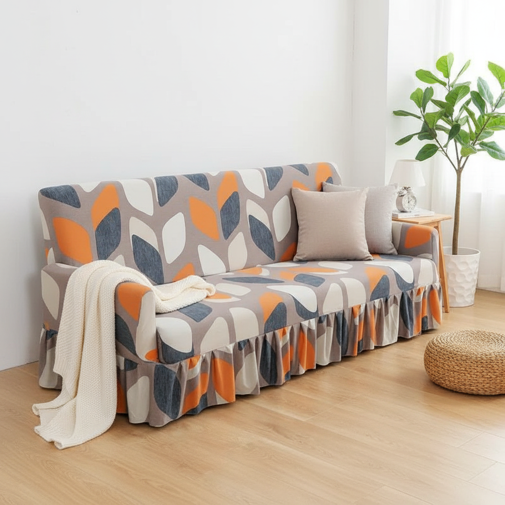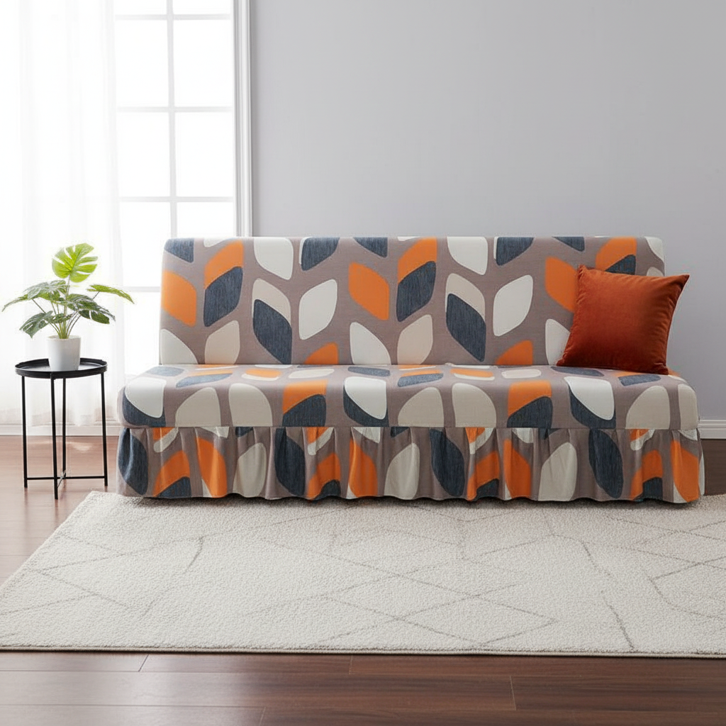 Offrez une seconde vie à votre canapé-lit avec notre housse de clic-clac en polyester tricoté. Son imprimé géométrique de feuilles orange, grises et blanches apporte une touche moderne et chaleureuse à votre intérieur, parfaite pour le printemps et l'été. Conçue pour épouser parfaitement les formes de votre mobilier, elle assure une protection efficace tout en renouvelant votre décoration.Caractéristiques & compatibilités