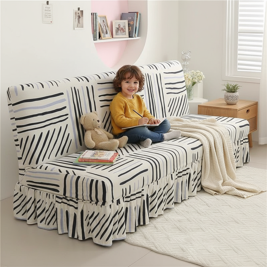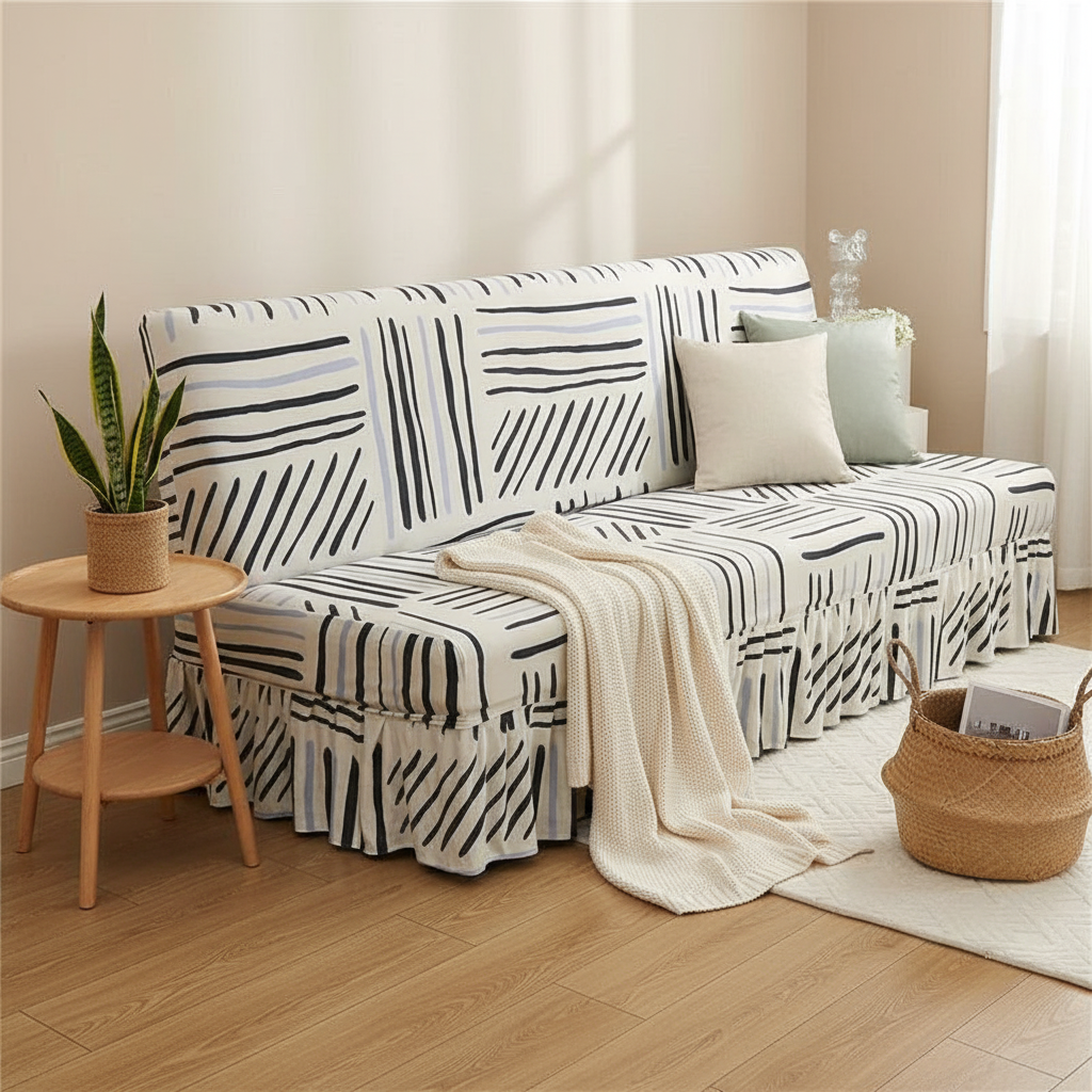 Transformez instantanément votre intérieur avec notre housse de clic-clac en polyester tricoté, alliant style et fonctionnalité. Ses motifs abstraits noirs et sa jupe élégante apportent une touche moderne et raffinée, tandis que sa conception antidérapante assure une tenue impeccable pour vos canapés-lits et loveseats.
