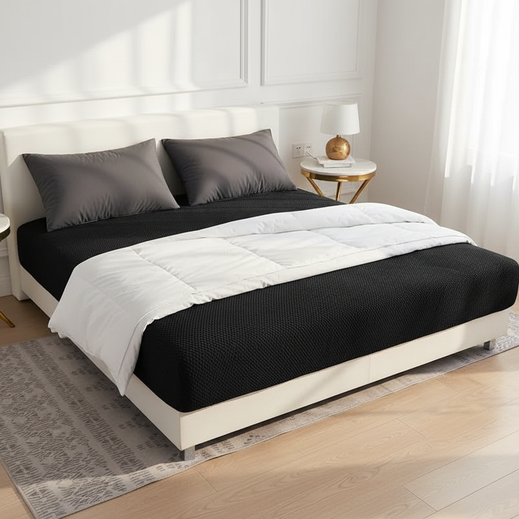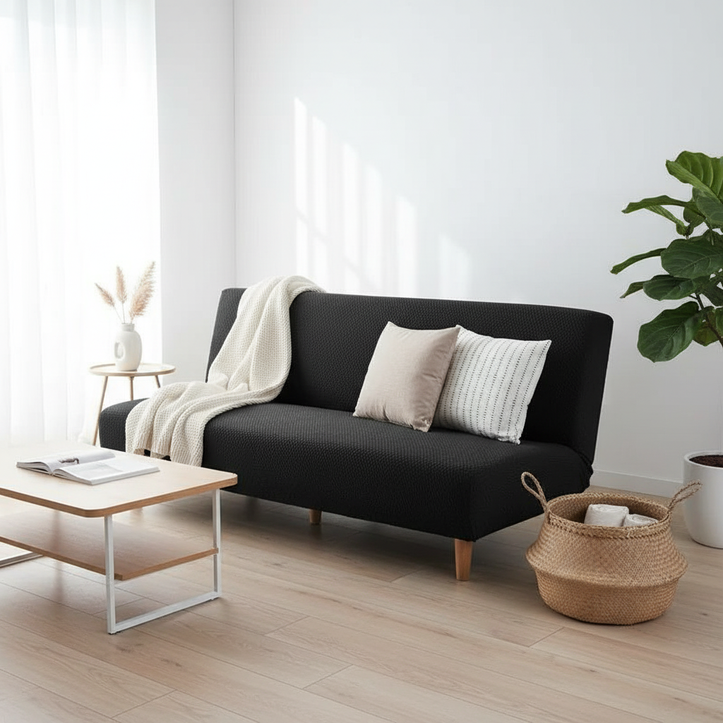 Offrez une nouvelle vie à votre canapé-lit avec notre housse de clic-clac noire jacquard. Conçue en 100 % polyester de haute qualité avec un grammage de 400 gsm, cette housse extensible assure une protection intégrale et un toucher doux et agréable pour un confort optimal.