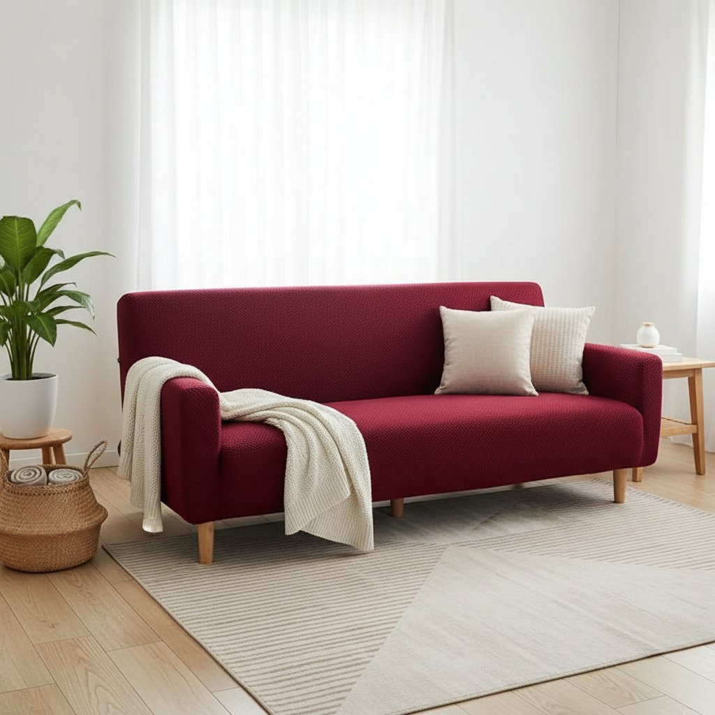 Sublimez et protégez votre canapé-lit avec notre housse de clic-clac bordeaux, conçue pour un ajustement parfait. Son tissu extensible et doux au toucher, avec une texture jacquard raffinée, offre une protection intégrale tout en apportant une touche d'élégance colorée à votre intérieur.