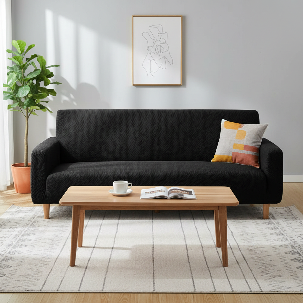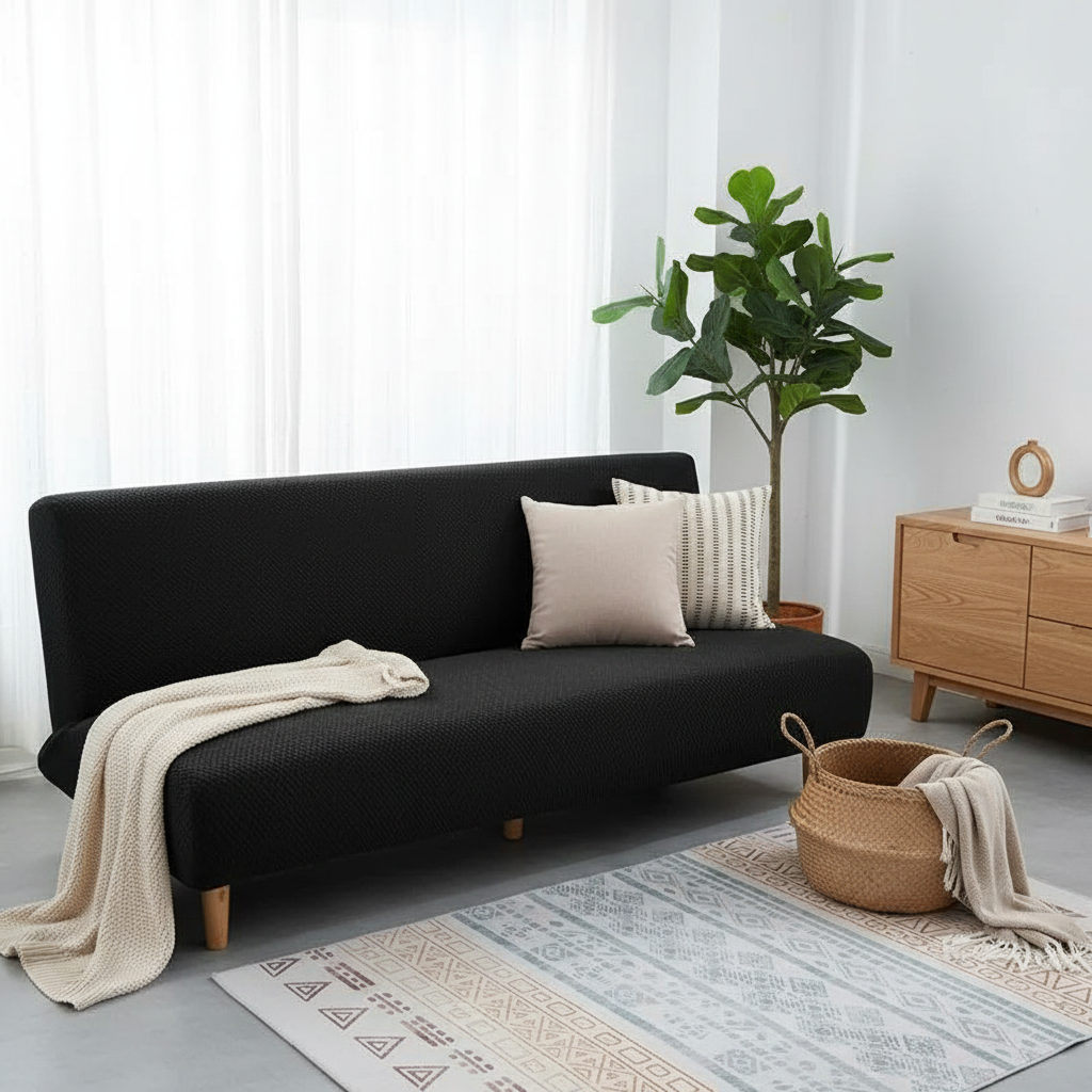 Renouvelez l'esthétique de votre intérieur avec notre housse de clic-clac noire, conçue pour allier style et fonctionnalité. Fabriquée en 100% polyester d'une densité de 400gsm, elle offre une texture jacquard discrète et une douceur incomparable. Sa grande élasticité assure un ajustement parfait, transformant et protégeant votre canapé-lit avec élégance.