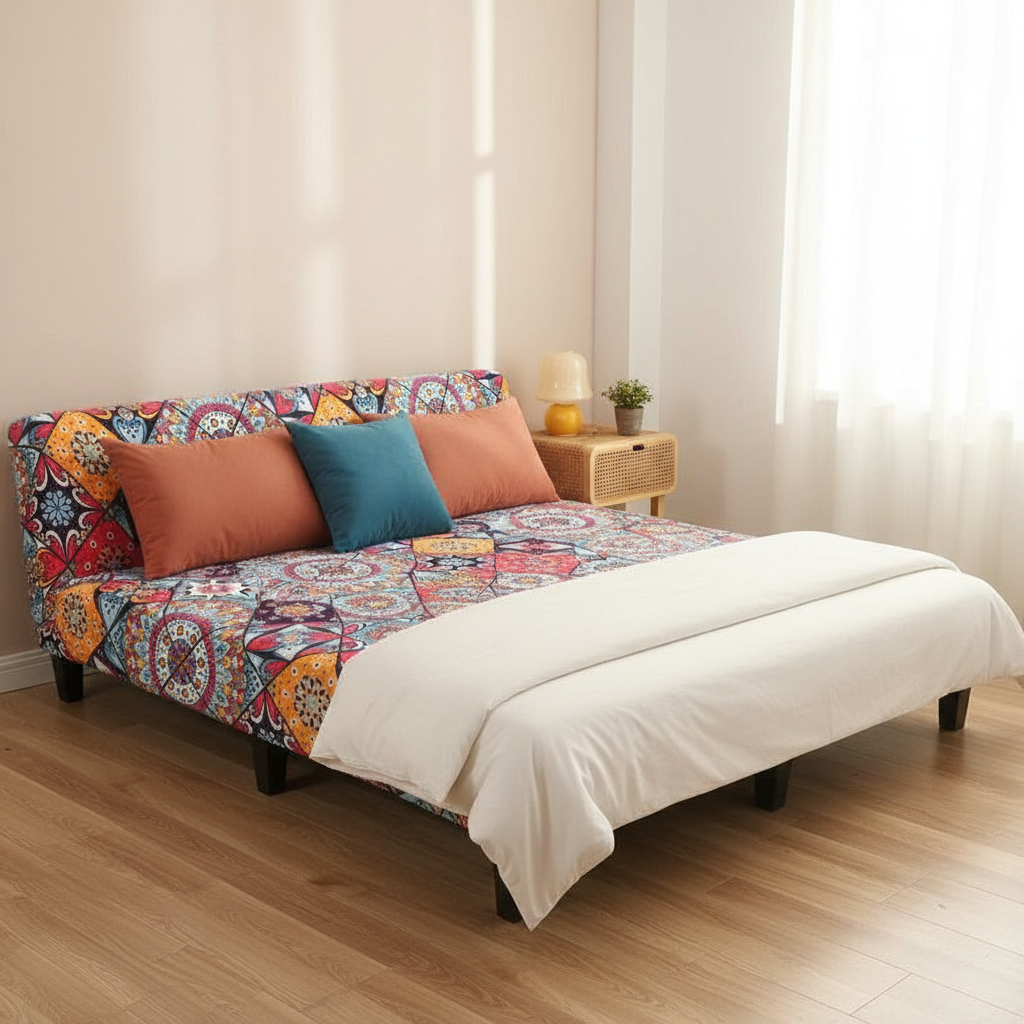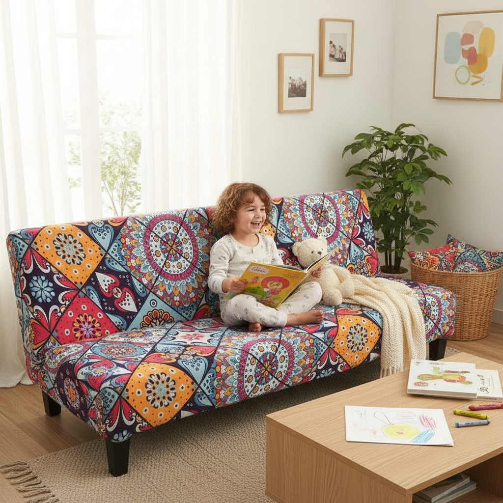 Transformez l'ambiance de votre salon avec notre housse de clic-clac vibrante, conçue en polyester doux et résistant. Son style coloré apporte une touche de gaieté et de modernité, idéale pour les saisons printemps et été, tout en protégeant entièrement votre canapé-lit.