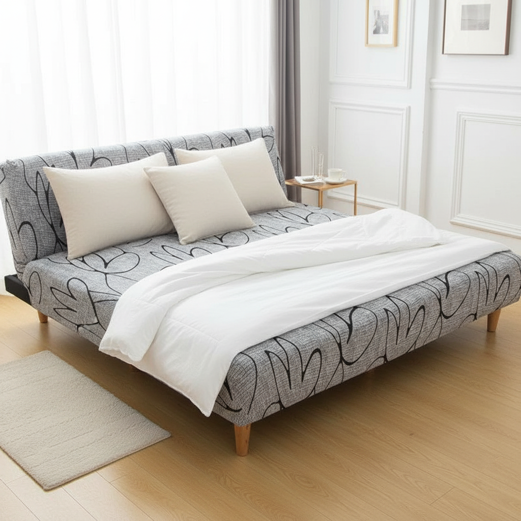Housse de Clic-Clac Motifs Gris Extensible pour Canapé-Lit