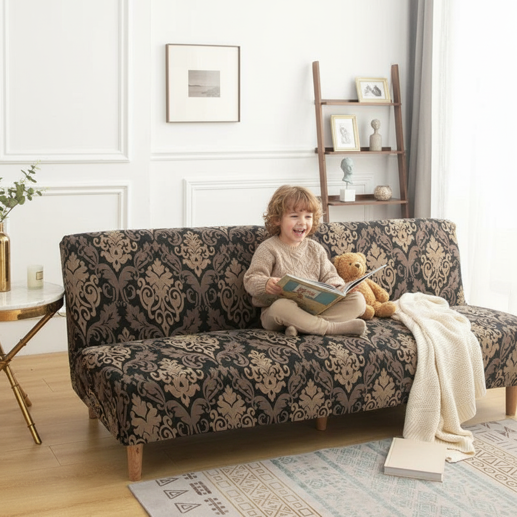 Transformez votre canapé-lit en un clin d'œil avec notre housse de clic-clac damassé noir doré. Conçue en polyester résistant et douce au toucher, elle apporte une touche d'élégance classique tout en protégeant et rafraîchissant votre meuble.