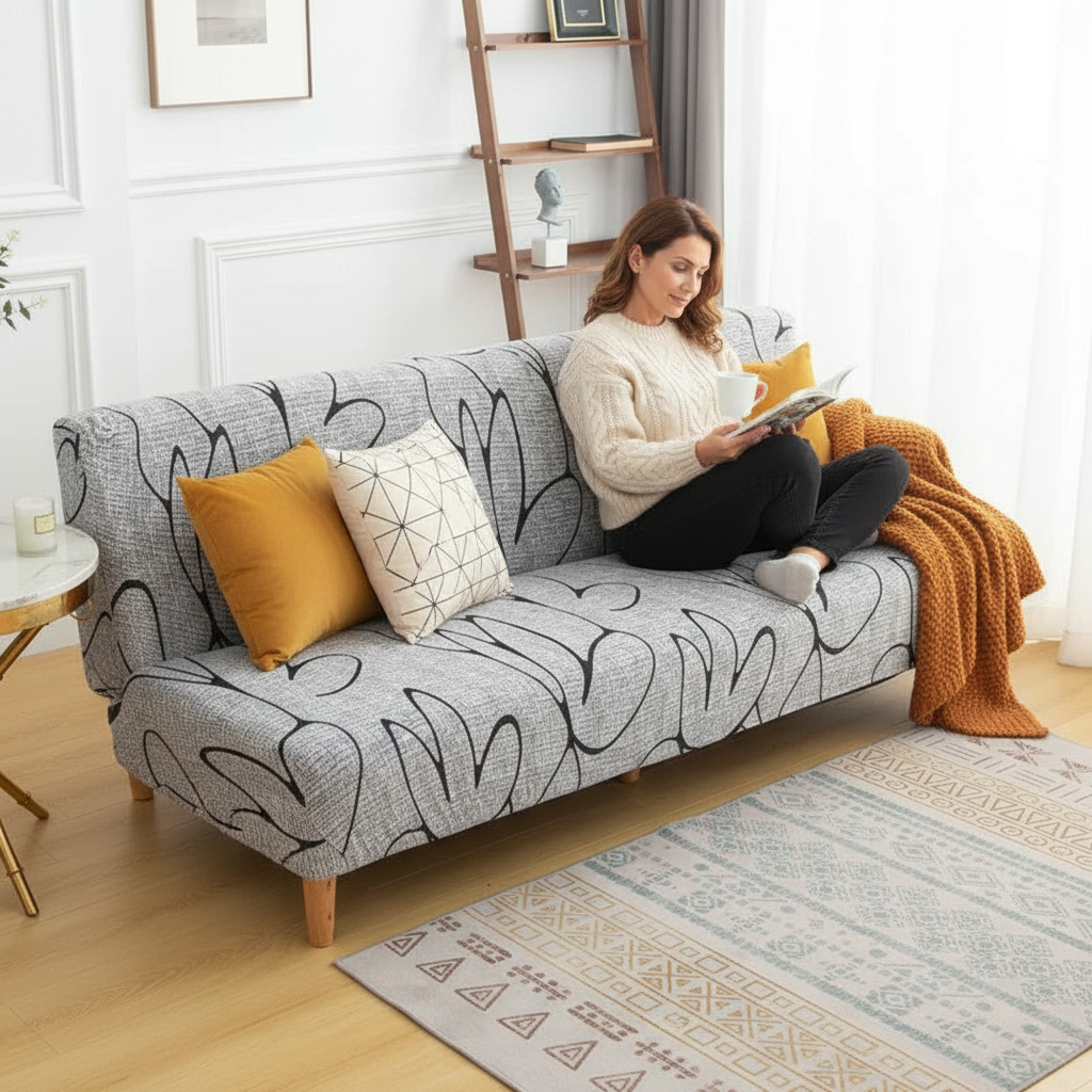 Spécialement conçue pour les canapés-lits de type futon, cette housse de banquette convertible enveloppe intégralement votre meuble, lui conférant une allure renouvelée. Sa conception garantit une installation facile et une tenue parfaite pour votre intérieur.