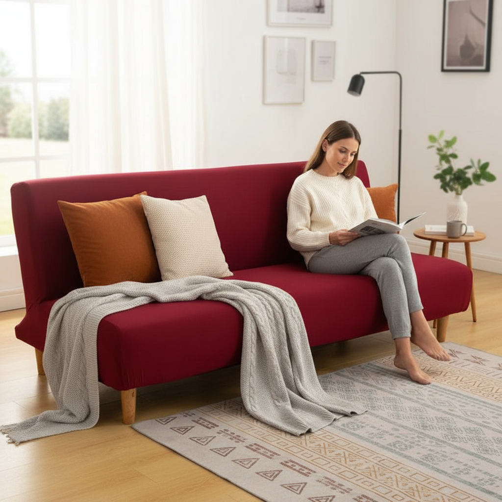 Housse de Clic-Clac Bordeaux sans Accoudoirs : Confort et Facilité d'Entretien Transformez instantanément votre canapé-lit avec cette housse de clic-clac...