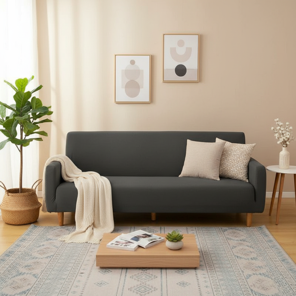 Cette housse de canapé-lit est spécialement conçue pour les clic-clac sans accoudoirs et les futons. Disponible en plusieurs tailles, elle s'adapte à la majorité des modèles, offrant une couverture complète et un aspect soigné à votre mobilier. Son coloris uni gris anthracite s'intègre harmonieusement à divers intérieurs.