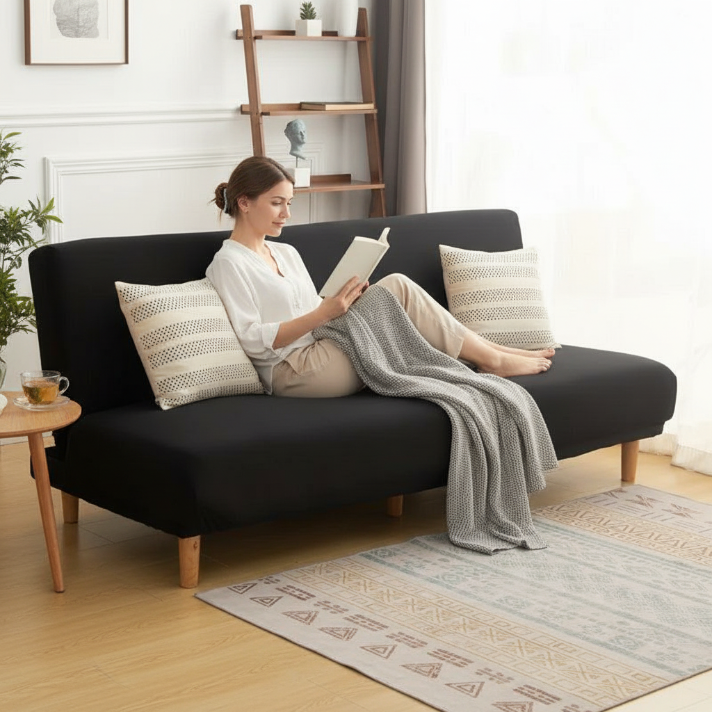 Cette housse intégrale est spécialement adaptée pour la plupart des canapés-lits de type futon, clic-clac ou banquette convertible. Disponible en deux tailles pour s'ajuster au mieux à votre mobilier, nous vous conseillons de consulter notre guide des tailles pour garantir une compatibilité parfaite.