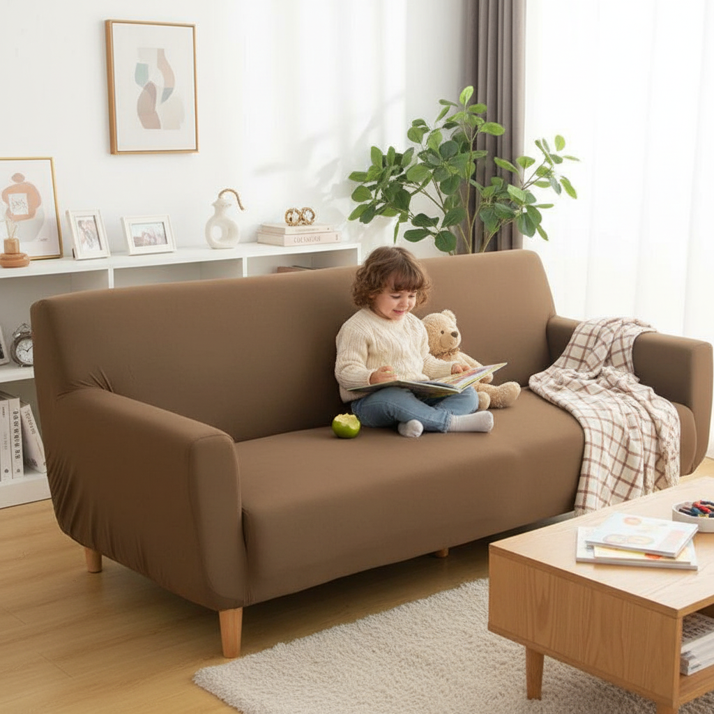 Sublimez votre intérieur avec notre housse de clic-clac marron, conçue pour apporter une touche d'élégance unie à votre canapé-lit. Fabriquée à partir d'un mélange de polyester et de spandex de haute qualité, elle offre un confort douillet et une douceur agréable au toucher, idéale pour les saisons printanières et estivales.
